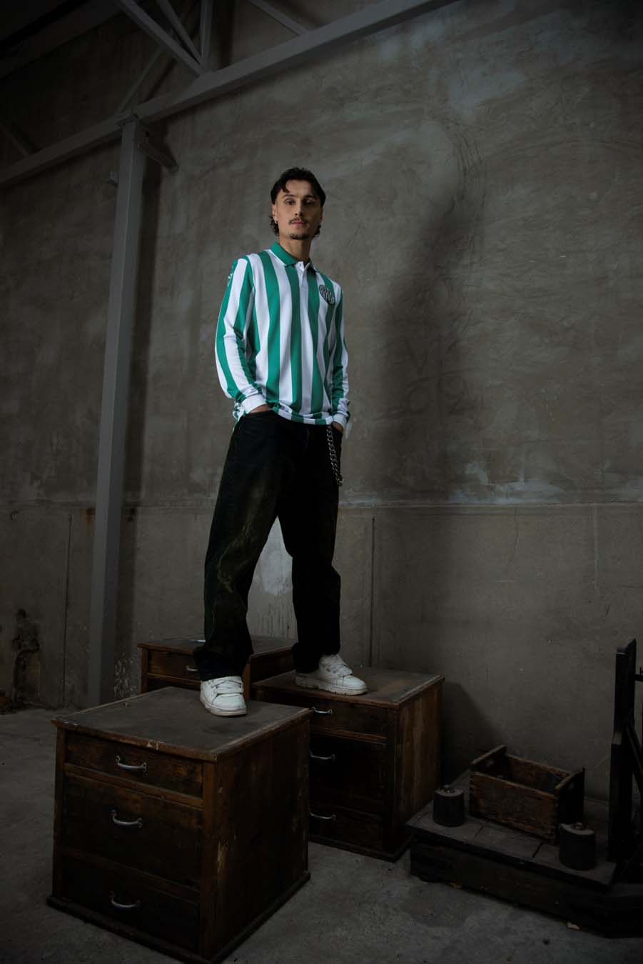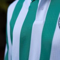 Based closely on the club’s original match shirt, the new jersey features the traditional green and white vertical stripes. The body, sleeves and back are all produced in Eco Fabric, a 100% recycled polyester obtained from post-consumer plastic, and specifically in Eco Checked Jacquardwhich gives the garment a textured, heritage-inspired look.