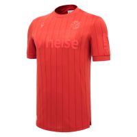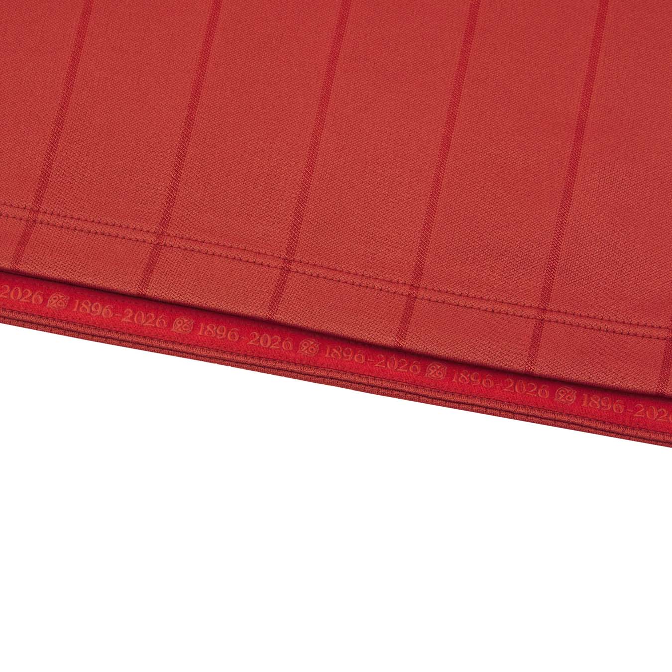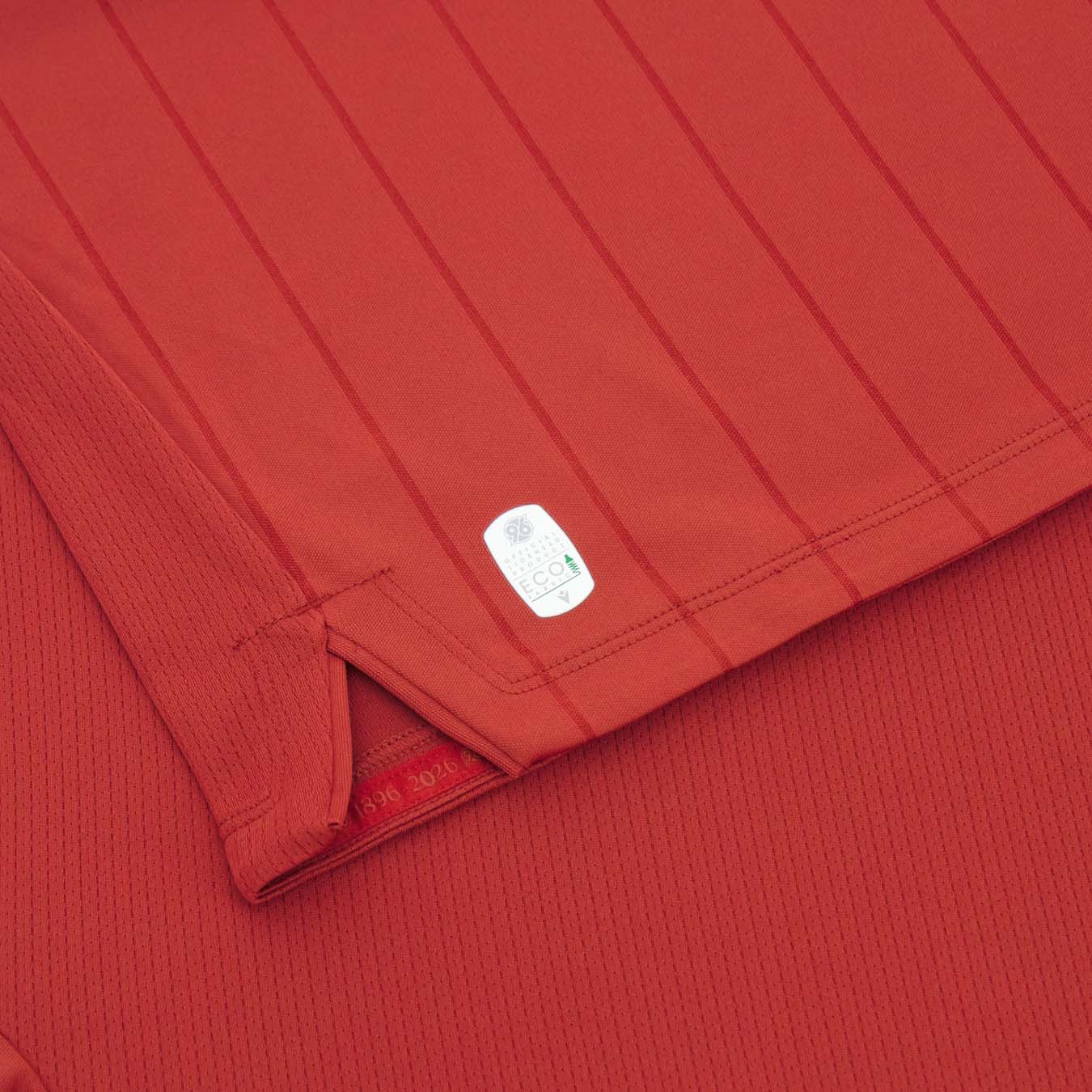 A key element of the kit’s concept is the stylistic choice to apply all front logos – the club crest, Macron Hero, main sponsor and official patches – in the same red tone as the shirt. This refined approach creates a clean and elegant tone-on-tone effect, enhancing the historical reference and giving the garment a strong heritage character. Also in tone-on-tone, a customised silicone band is positioned on the inner rear hem, featuring the dates of the club’s 130th anniversary, 1896–2026, repeated and interspersed with the Hannover 96 crest. The same dates are also embroidered on the external back neck.