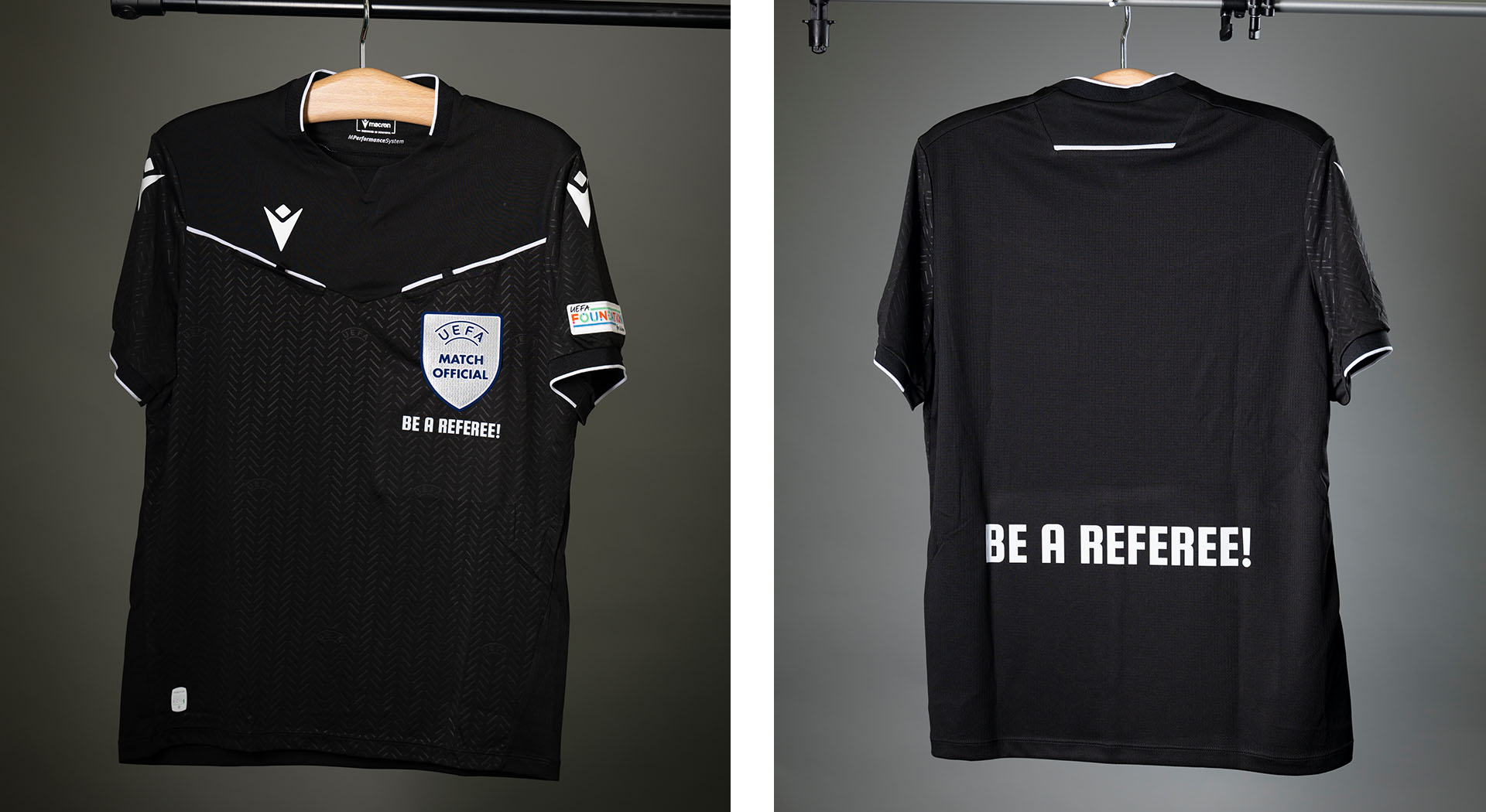 Macron, the Official UEFA Referee Match Kit Supplier, shares these same values and supports UEFA in this new initiative. The message “BE A REFEREE” will appear on the front and back of the referees’ shirts in all matches of this round of the Champions League. In addition to customised kits, the campaign will be backed up by signage around the stadiums and will also be mentioned by radio and TV commentators before during the games.