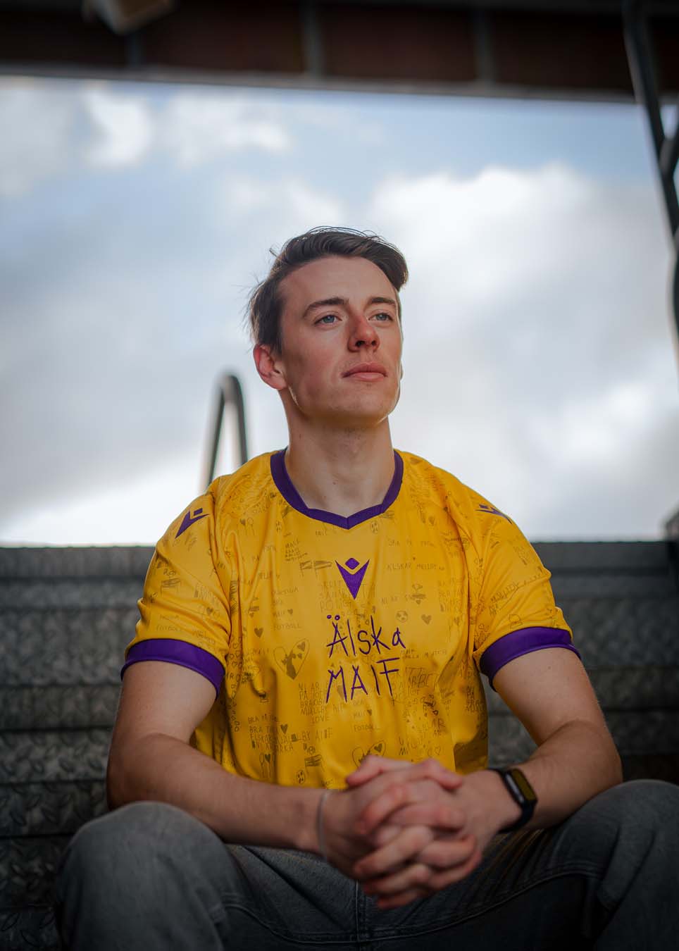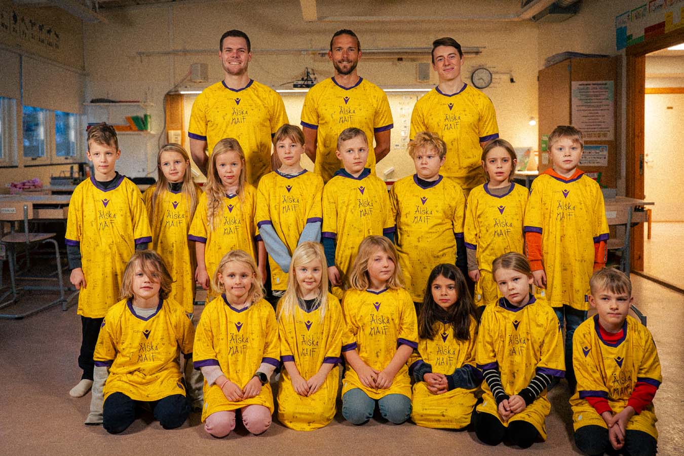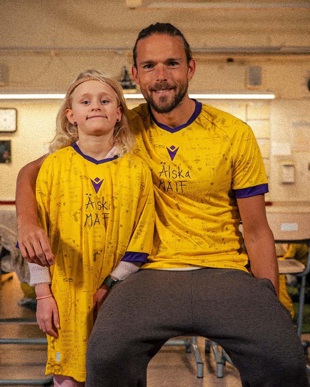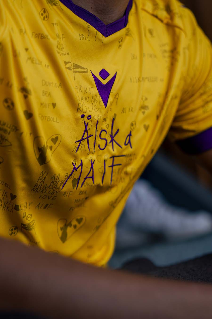 The new Mjällby AIF 2026 Pre-Season shirt features a bright yellow base, the historic colour of the club, enriched by an all-over sublimated graphic composed of drawings, symbols and handwritten elements inspired by the children’s creative contributions.