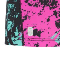 The kit is completed by pink shorts with inserts on the sides and back that echo the abstract graphics of the shirt. The socks are pink with two thin sky blue and black stripes at calf height.
