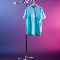 The new Oxford United FC Third Kit 2025/26 is sky bluewith white and pink details on the V-neck and sleeve edges. The front of the kit and the sleeves are further enriched by the fabric used. Eco Lanman is a jacquard fabric, which features a pattern of thin vertical stripes woven directly into the fabric. This creates a pinstripe effect that is barely perceptible to the eye or touch but adds elegance and quality to the garment.