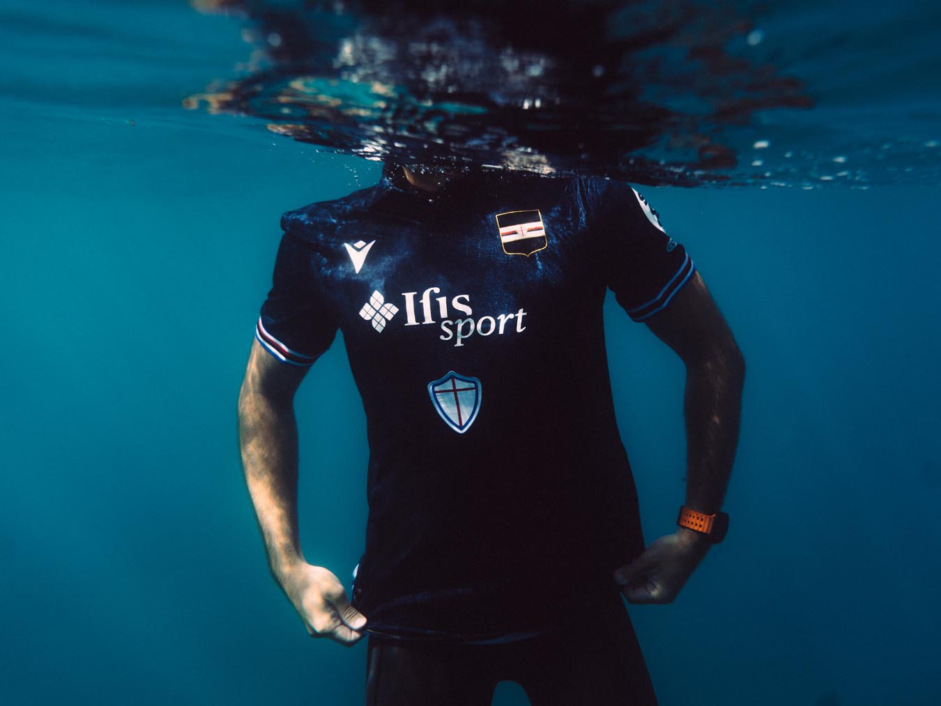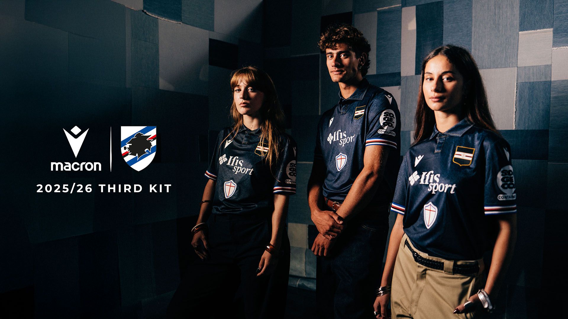 On the eve of their fourth Serie B league match, away to Monza, U.C. Sampdoria complete the unveiling of the 2025/26 Game Set with the presentation of the new Third Kit produced by Macron for the Blucerchiati. This third strip pays tribute to the history of Genova, and reaffirms the connection between football and fashion. Technical performance is combined with elegance, design and style, making it a garment to be worn both on the pitch and throughout the day.