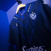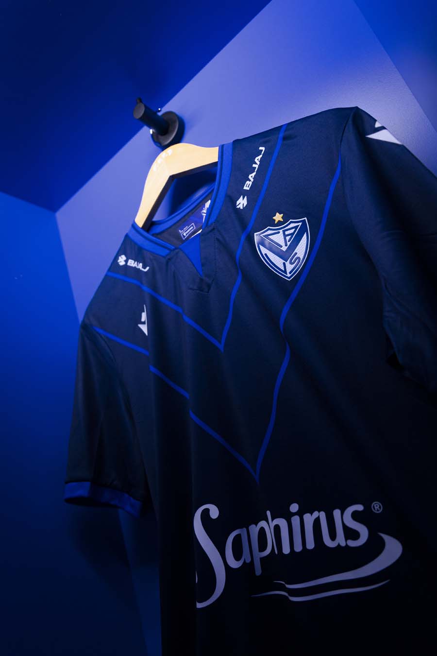 The 2026 Away Kit comes in navy blue, with knitted collar edging, sleeve cuffs and hem inserts in royal blue. The chevron on the chest is outlined in royal blue against the navy background, creating a more subtle yet distinctive visual effect. Inside the outline, the Macron Hero appears on the right in white thermoplastic print, while the Vélez Sarsfield crest is positioned on the left.