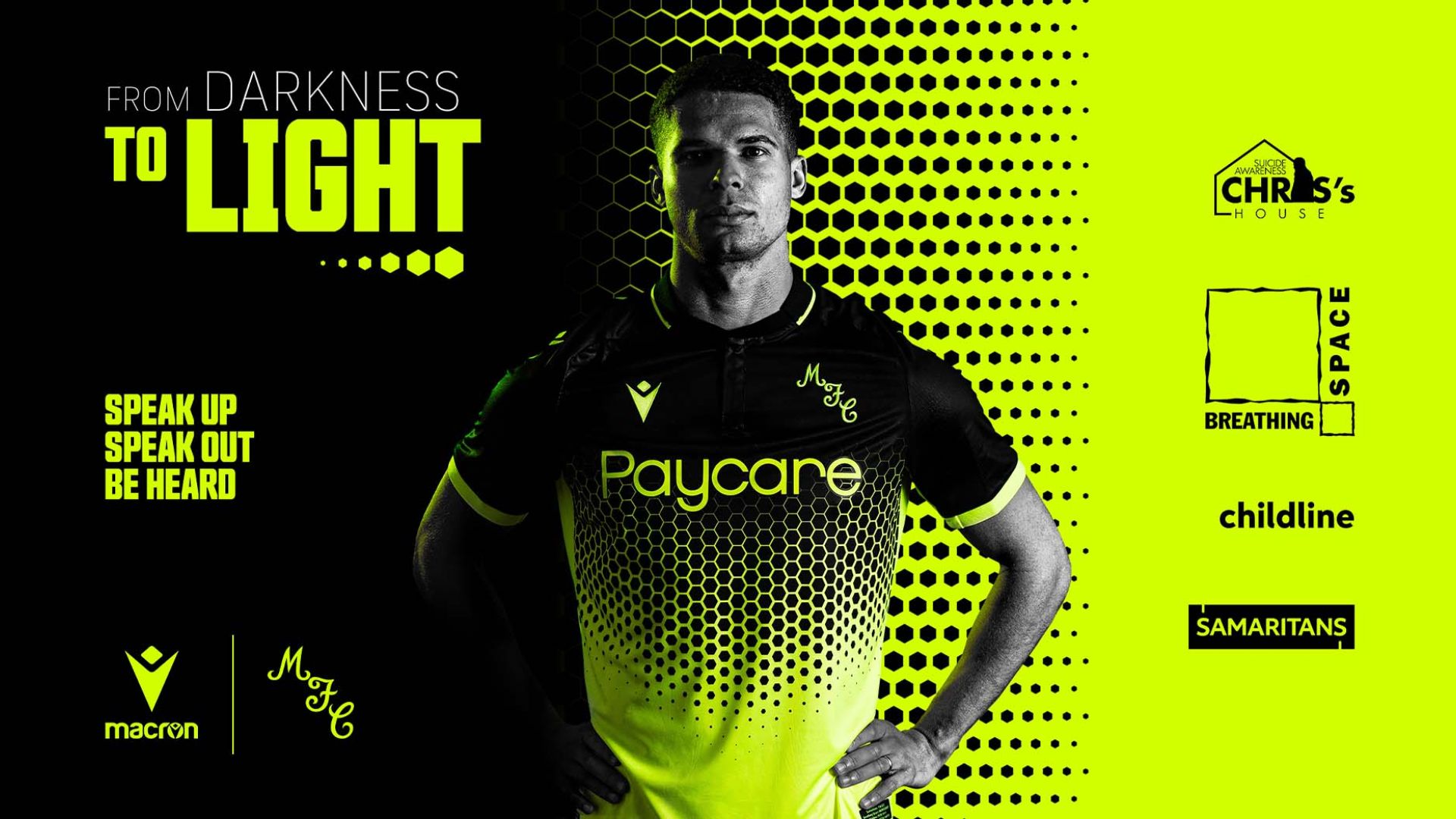 The kit, which graphically represents the gradual transition from shadow to light, comes with a patch in the bottom left corner containing the contact details of the four charities involved in this initiative, namely Samaritans, Breathing Space, Childline and Chris’s House. All proceeds from the sale of the kit will, in fact, be distributed equally by Motherwell FC to these charities, which are dedicated to providing an essential first contact for those who feel suicidal.