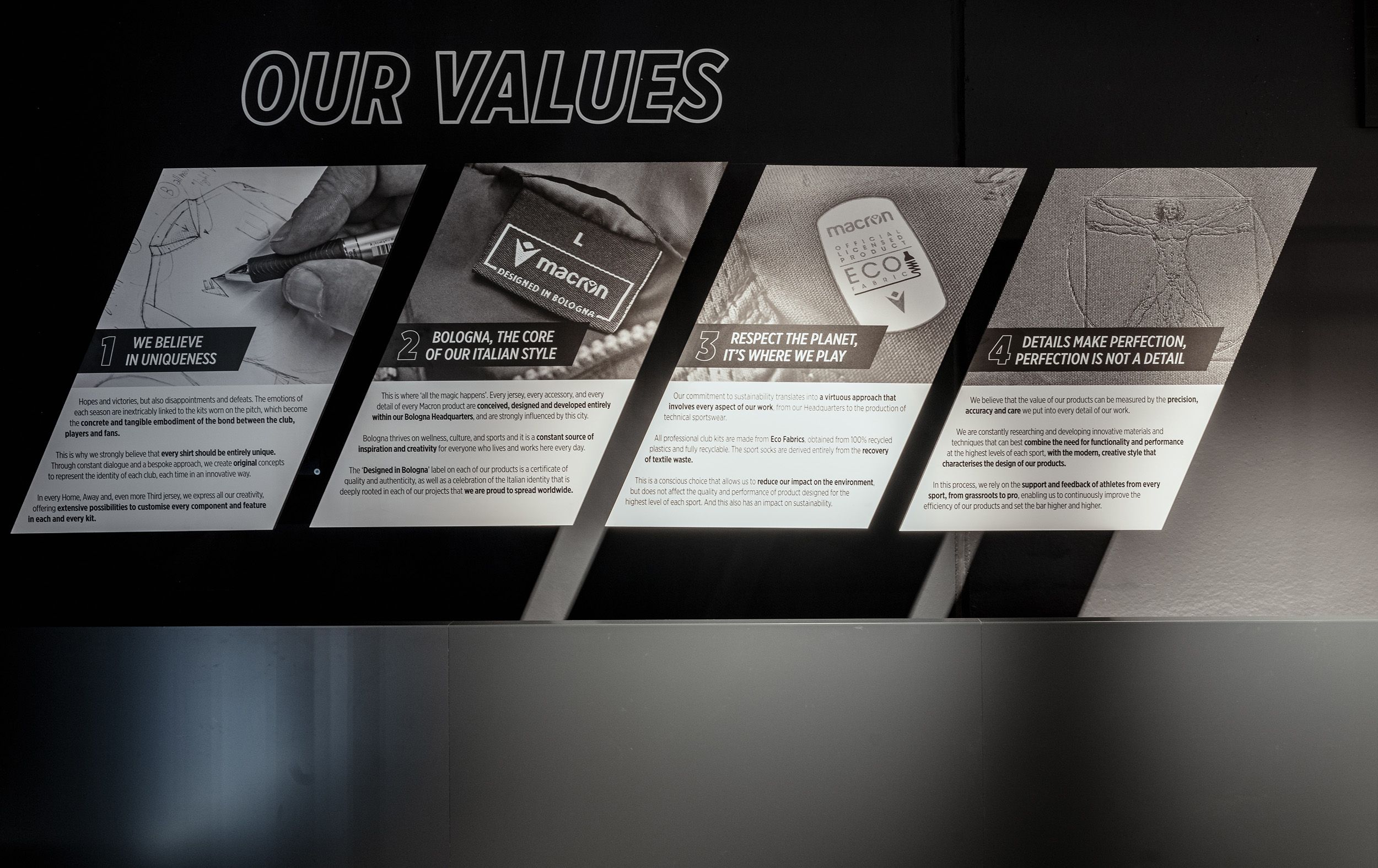 Nel 2020, Macron ha inaugurato il suo avveniristico Campus, un’area di 22.000 mq che unisce uffici e magazzini in un ambiente all’insegna dell’innovazione e dell’efficienza, immerso in 55.000 mq di verde. Progettato con una visione sostenibile, il Campus ospita uffici, showroom, aree di produzione, stoccaggio e spedizione, oltre a campi sportivi dedicati ai test sui materiali. A gennaio 2025 sono iniziati i lavori per l’ampliamento del Campus con un terzo edificio, portando l’area verde complessiva a 100.000 mq. Un ulteriore passo avanti per sostenere la crescita, rafforzare le nostre capacità e continuare a innovare nel segno della sostenibilità.