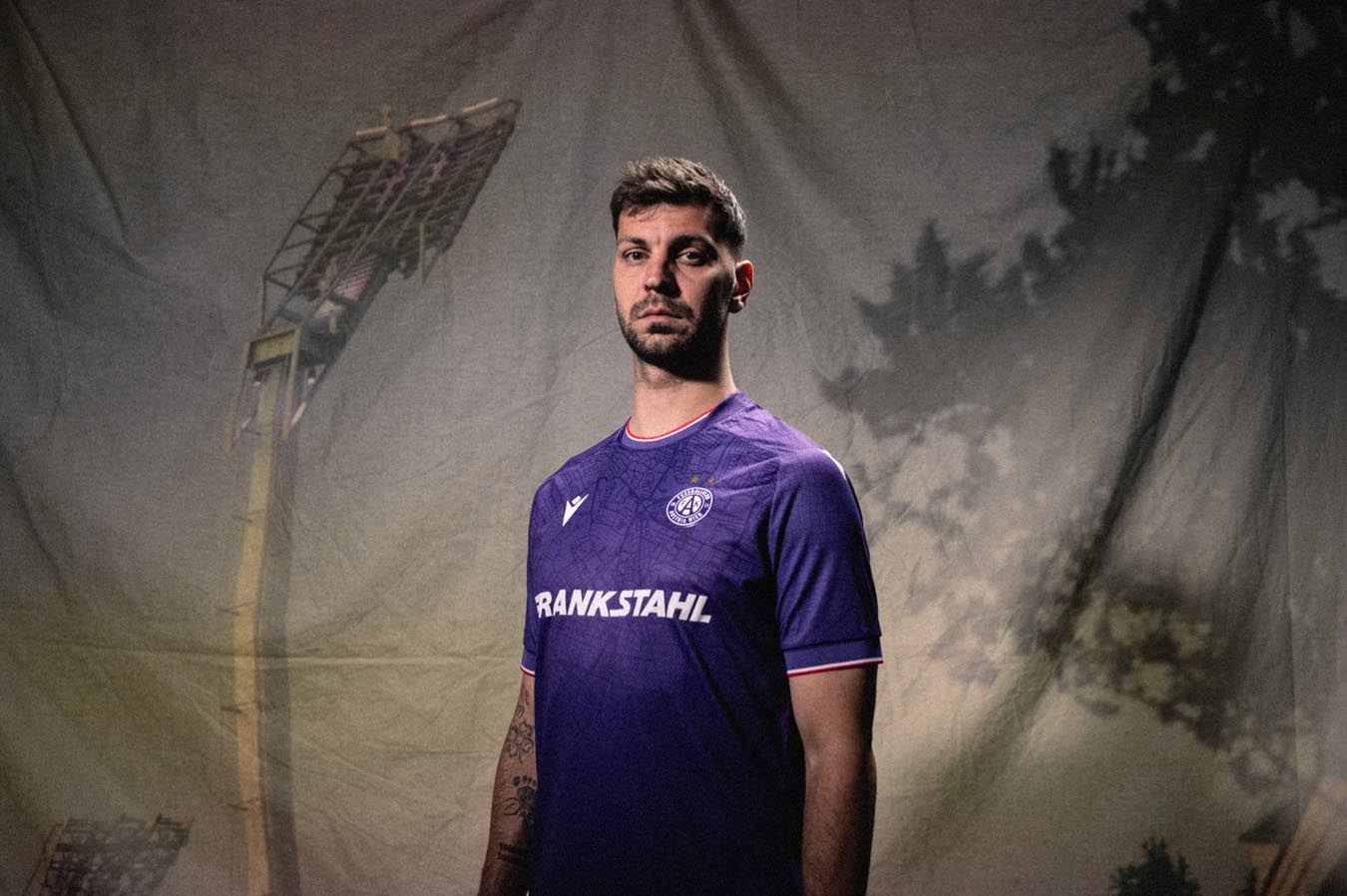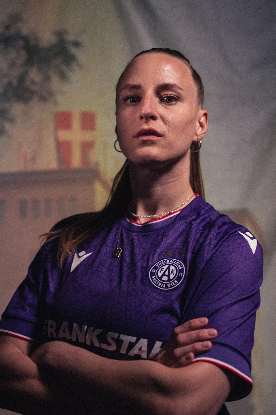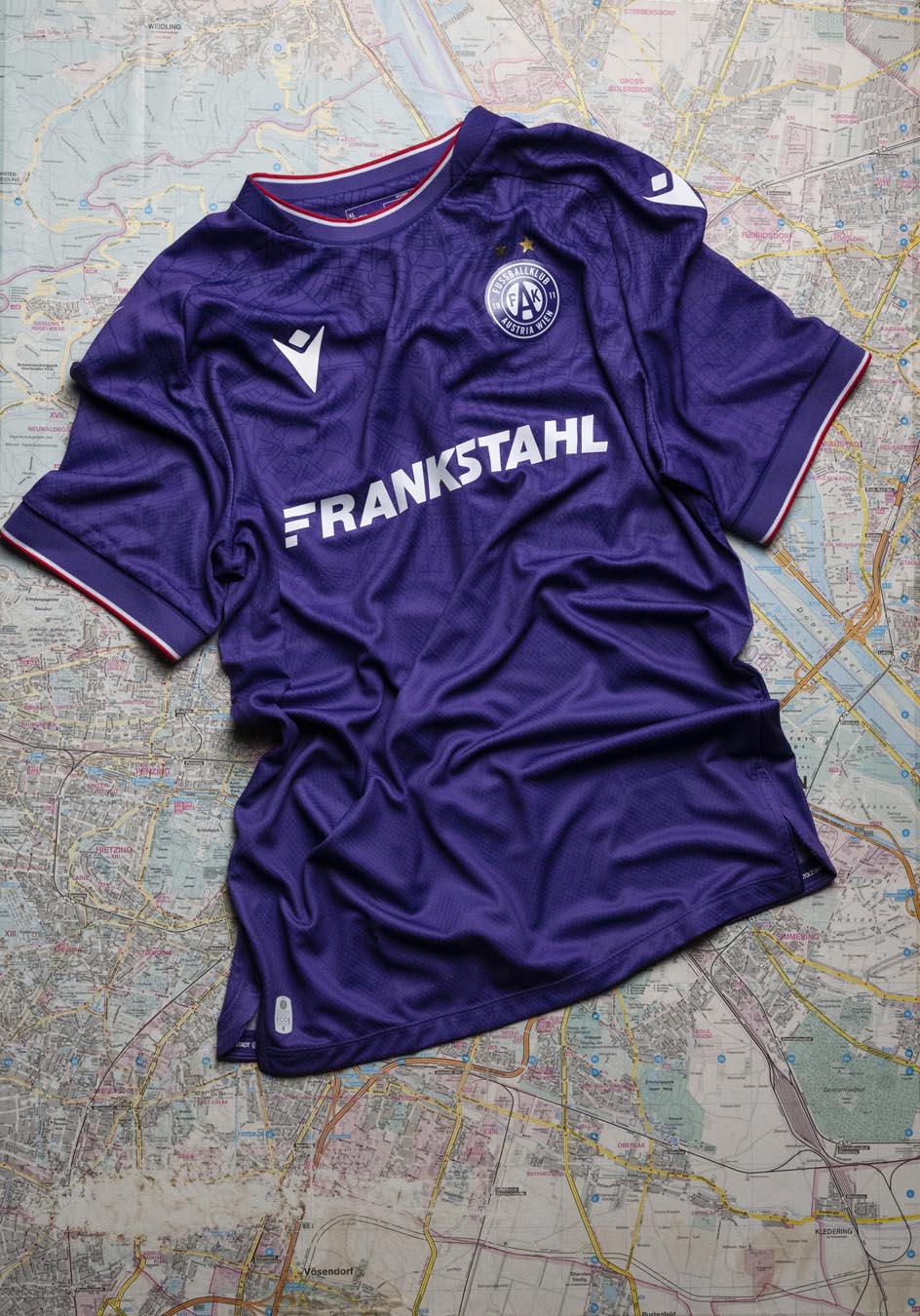 Il nuovo Home Kit dell’FK Austria Wien è espressione di identità, senso di appartenenza, uniti alla qualità sartoriale, creatività e design che sono i segni distintivi di Macron, dallo scorso anno partner tecnico del club austriaco e un brand leader nel mondo dello sportswear. La tradizione del colore viola che contraddistingue da sempre l’Austria Wien è arricchita, fronte e retro, da una grafica sublimata, sfumata e tono su tono che rappresenta la mappa della storica capitale austriaca. Con Favoriten (10°) sul petto, Simmering (11°) sulle maniche e Floridsdorf (21°) e Donaustadt (22°) sul retro, sono stati in questo modo immortalati i quattro distretti con il maggior numero di membri su una maglia.