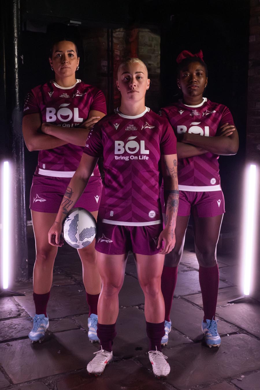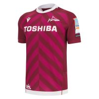 La nuova maglia Away 2025/26 dei Sale Sharks presenta infatti una grafica geometrica sia sulla parte anteriore che posteriore, composta da bande alternate diagonali che convergono al centro. I due colori principali che caratterizzano il kit sono il bordeaux e il magenta, completati da un girocollo bianco e da una sottile banda dello stesso colore a fondo maglia. Le maniche, così come le bande laterali, sono interamente color bordeaux. Lo stesso vale per la parte inferiore del retro del kit, sul quale è inoltre presente un disegno in stampa embossata che raffigura la pinna dello squalo, simbolo del club, e la data 1861, ovvero l’anno di fondazione.
