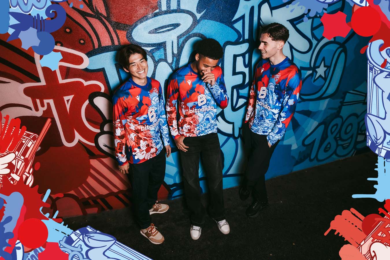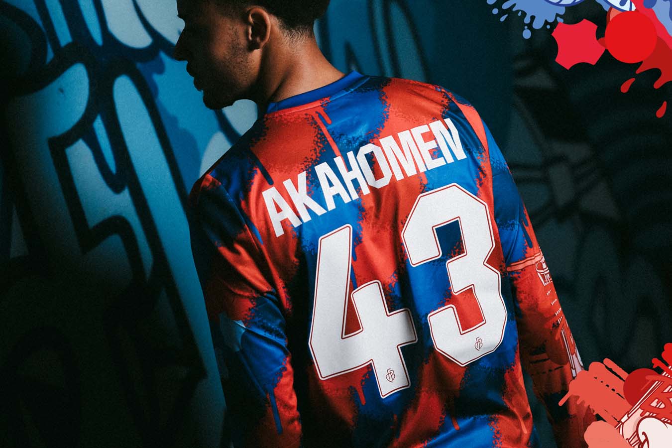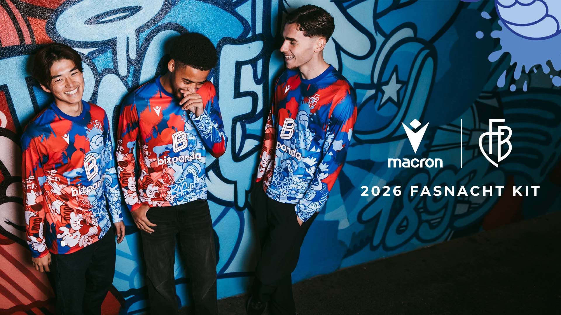 Il design avvolge il corpo: il fronte è caratterizzato da una grafica all-over in stile murale, mentre il retro è dominato da un pattern che rende omaggio al Blätzli-Bajass, una delle tradizionali maschere del Carnevale di Basilea che indossa un costume composto da centinaia di piccoli frammenti di tessuto cuciti insieme. In questo caso, il motivo è reinterpretato attraverso tonalità più chiare e più scure di rosso e blu applicate con un effetto graffiti. Sul retro del collo delle maglie che verranno indossate dai giocatori in gara sarà inoltre applicata la scritta “BLYYB VERSPIILT”, espressione in dialetto basilese che significa “resta giocoso” o “non perdere il tuo spirito giocoso” e che racchiude perfettamente lo spirito della Fasnacht e la filosofia alla base del kit: creatività senza confini, ironia, libertà di espressione e un profondo senso di appartenenza.