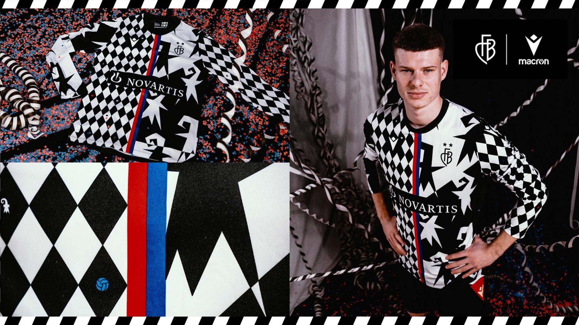 Il design della maglia a rombi bianchi e neri si basa sulla classica figura di Ueli, ovvero una delle maschere carnevalesche tradizionali della città che ha le sembianze di un giullare medievale. Questo però non è l’unico riferimento ad uno dei Goschdym (letteralmente costumi) del Carnevale di Basilea, che sfilano per le strade della città elvetica durante i festeggiamenti lanciando coriandoli. La mimosa intrecciata al Baslerstab presente nel retro della maglia è infatti un riferimento alla celebre figura di Waggis, che durante i festeggiamenti sfila lanciando proprio rametti di questa pianta primaverile al pubblico.