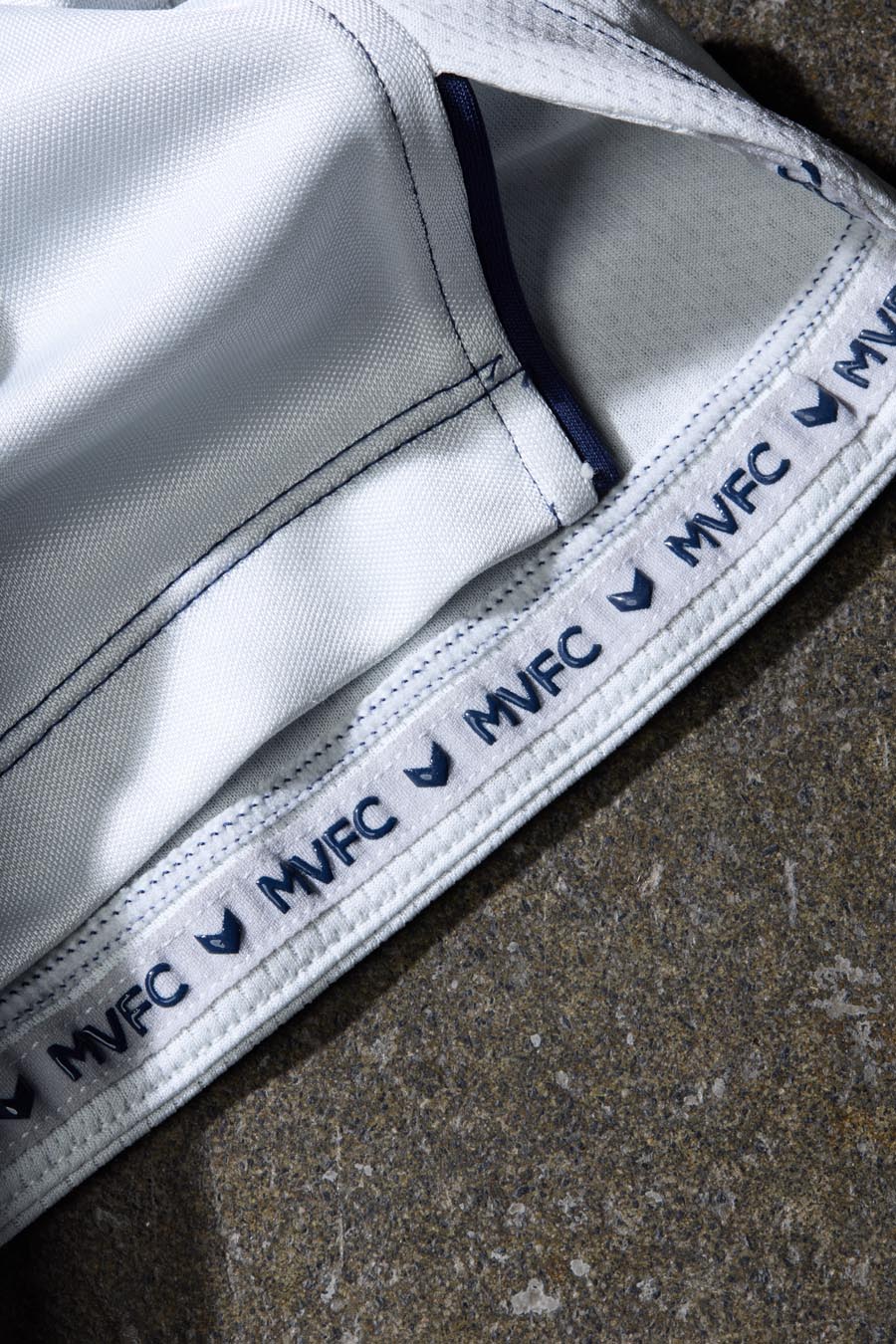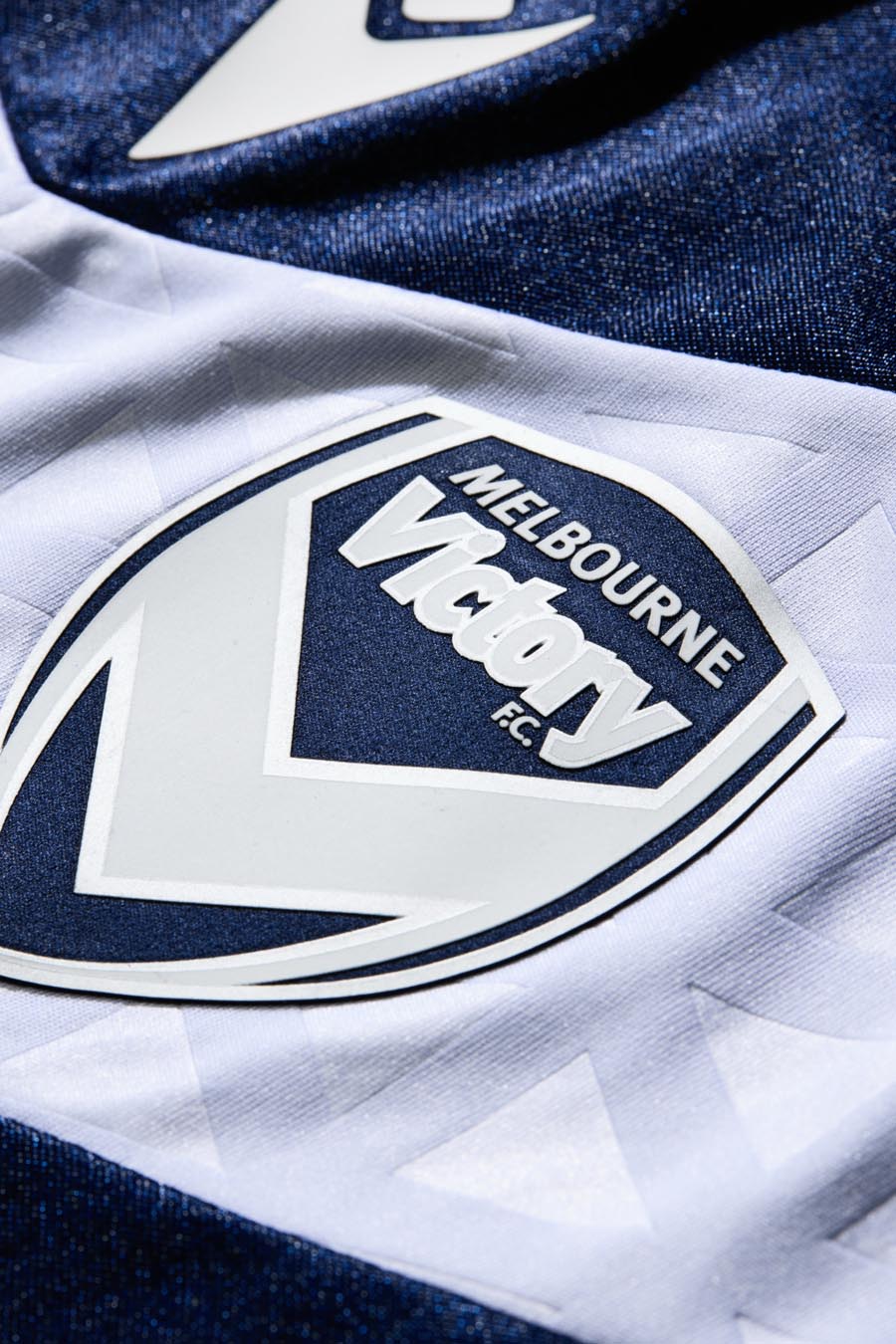 La nuova maglia Home 2025/26 del Melbourne Victory FC è blu navy e come da tradizione è attraversata al centro del petto da un inserto bianco a forma di chevron, caratterizzato da una grafica embossata geometrica che rievoca i triangoli che compongono la struttura dell’AAMI Park. Il collo a V, così come i bordi manica, è caratterizzato dall’aggiunta di dettagli bianchi e argento. Il Macron Hero, in bianco, è posizionato al centro del petto, con lo stemma del club applicato sul lato sinistro e il logo della A-League su quello sinistro. L’etichetta nel backneck interno è personalizzata con uno sfondo blu navy caratterizzato dallo stesso pattern a triangoli presente sul chevron, lo stemma della squadra, il logo Macron e la scritta Designed in Bologna, a certificare ed evidenziare come ogni capo sia ideato, progettato e sviluppato nel Macron Campus. Nel fondo maglia interno è infine inserito un tape in silicone che riporta, ripetuto, l’acronimo MVFC, intervallato da un simbolo che richiama il chevron. Il kit è completato da pantaloncini e calzettoni blu navy.