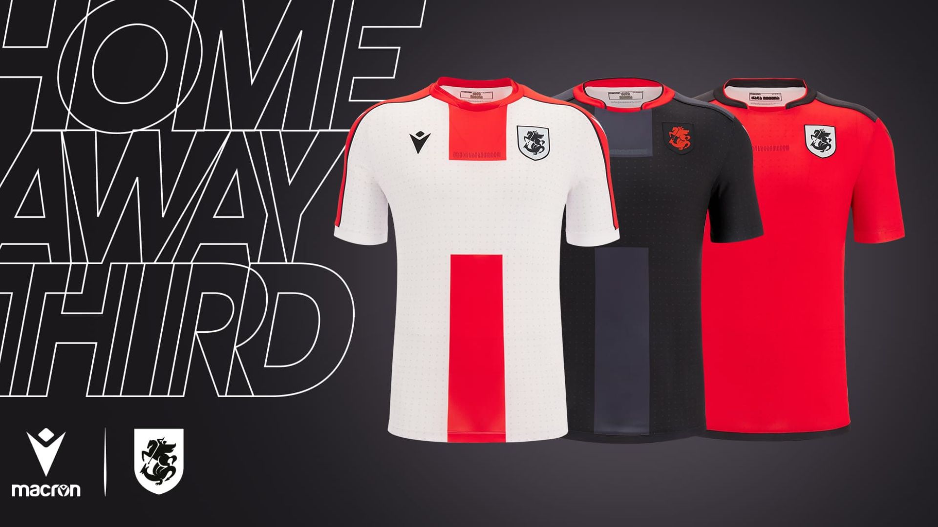 La Georgian Football Federation e Macron, da quest’anno sponsor tecnico delle squadre Nazionali georgiane, hanno presentato le nuove maglie che “i crociati” indosseranno nei prossimi impegni internazionali. I nuovi kit gara esprimono il forte senso di identità nazionale. Colori, simboli, grafiche ricercate e innovative che rappresentano l’appartenenza ad un popolo e ad una nazione. San Giorgio (patrono della Georgia), la sua croce e il drago sono il comun denominatore per esaltare i valori, il carattere, la mission che i giocatori portano in campo.