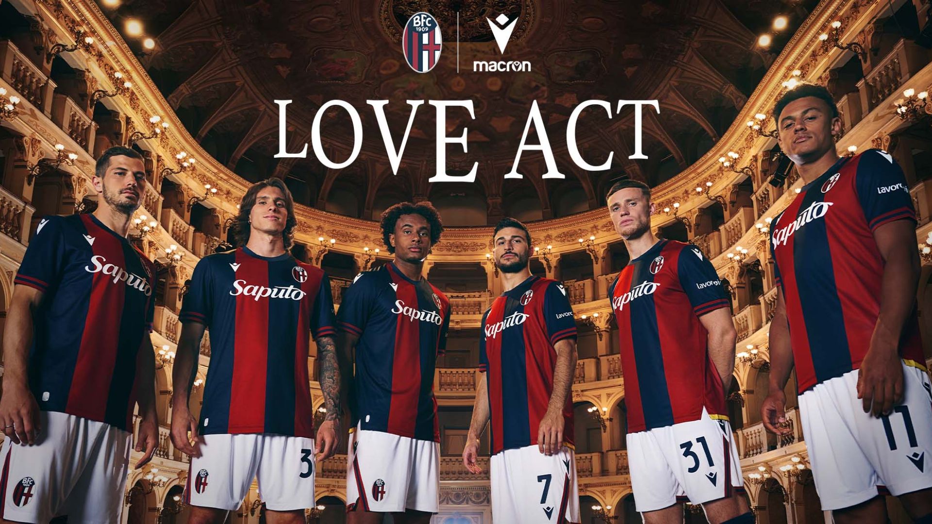 Il nuovo kit Home del Bologna FC 1909 è stato presentato attraverso un photoshooting realizzato al Teatro Comunale di Bologna, con una campagna intitolata “Love Act – Atto d’Amore” a sottolineare il fantastico percorso compiuto dalla squadra in simbiosi con una tifoseria sempre più calda e appassionata. Una divisa casalinga che alla tradizione unisce innovazione tecnica e stilistica. Per la prima volta il Bologna ha infatti optato per il tessuto jacquard Eco Exalock, caratterizzato da una fine trama all-over e da un differente ‘look and feel’ rispetto ai tradizionali tessuti tecnico-sportivi. Una scelta che unisce funzionalità, eleganza dei dettagli e riferimenti identitari e alla storia del club. Il nuovo kit conferma inoltre l’impegno condiviso tra club e sponsor tecnico sui temi dell’ambiente e della sostenibilità, essendo interamente realizzato con tessuti Eco Fabric, al 100% provenienti da plastica riciclata.