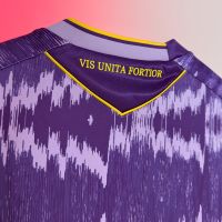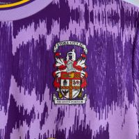 La nuova Away 2025/26 dello Stoke City FC è completamente viola, con girocollo e polsi manica bordati di giallo. La maglia è caratterizzata da un motivo grafico composto da sfumature di viola e di lilla in stampa sublimata, a rievocare l’iconico design del kit da trasferta del 1992/93. Ulteriore elemento che aggiunge un sapore retro al nuovo Away Kit dello Stoke City FC è il tessuto col quale è realizzato: l’Eco Everton è caratterizzato infatti da un effetto luminoso particolarmente impattante a livello visivo, in grado di ricreare il look and feel tipico dei kit degli anni ’90. Trattandosi di un Eco Fabric, ovvero di un tessuto ottenuto al 100% dal riciclo di plastica post-consumer, a questo riferimento storico si unisce anche un forte messaggio di sostenibilità e di attenzione verso l’ambiente.