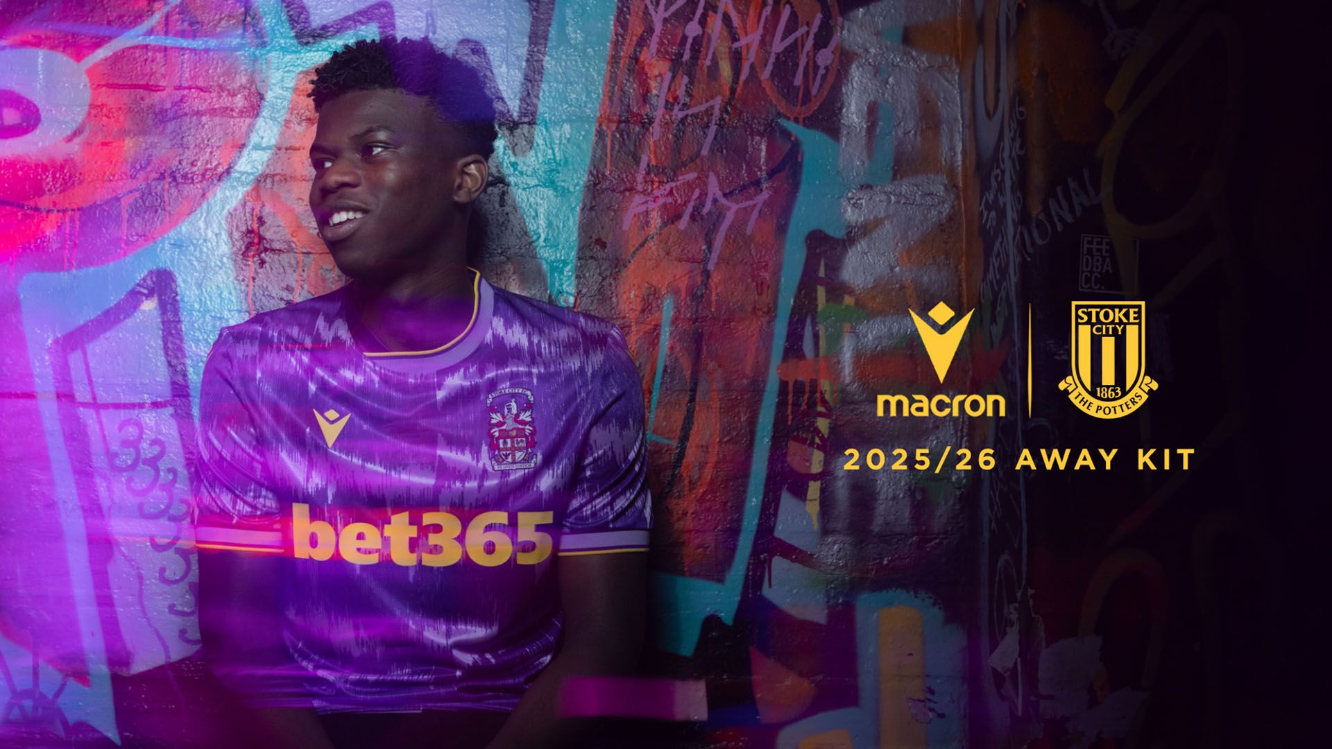 Dopo la presentazione dell’Home Kit 2025/26, una maglia dalla grafica innovativa e scelta dai tifosi dello Stoke City FC, il club inglese svela anche quello che sarà il nuovo Away Kit 2025/26 realizzato da Macron, partner tecnico dei Potters. Una divisa da trasferta anch’essa di sicuro impatto, dal forte richiamo retro sia nel design che nei tessuti. Il riferimento è ad una stagione particolarmente cara ai tifosi dello Stoke City FC, ovvero quella del 1992/93: a seguito di una grande cavalcata, i Potters guidati da Lou Macari in panchina e trascinati dai gol di Mark Stein ottennero una storica promozione in First Division, utilizzando come divisa da trasferta proprio una maglia con sfumature di viola e dettagli gialli, diventata iconica.