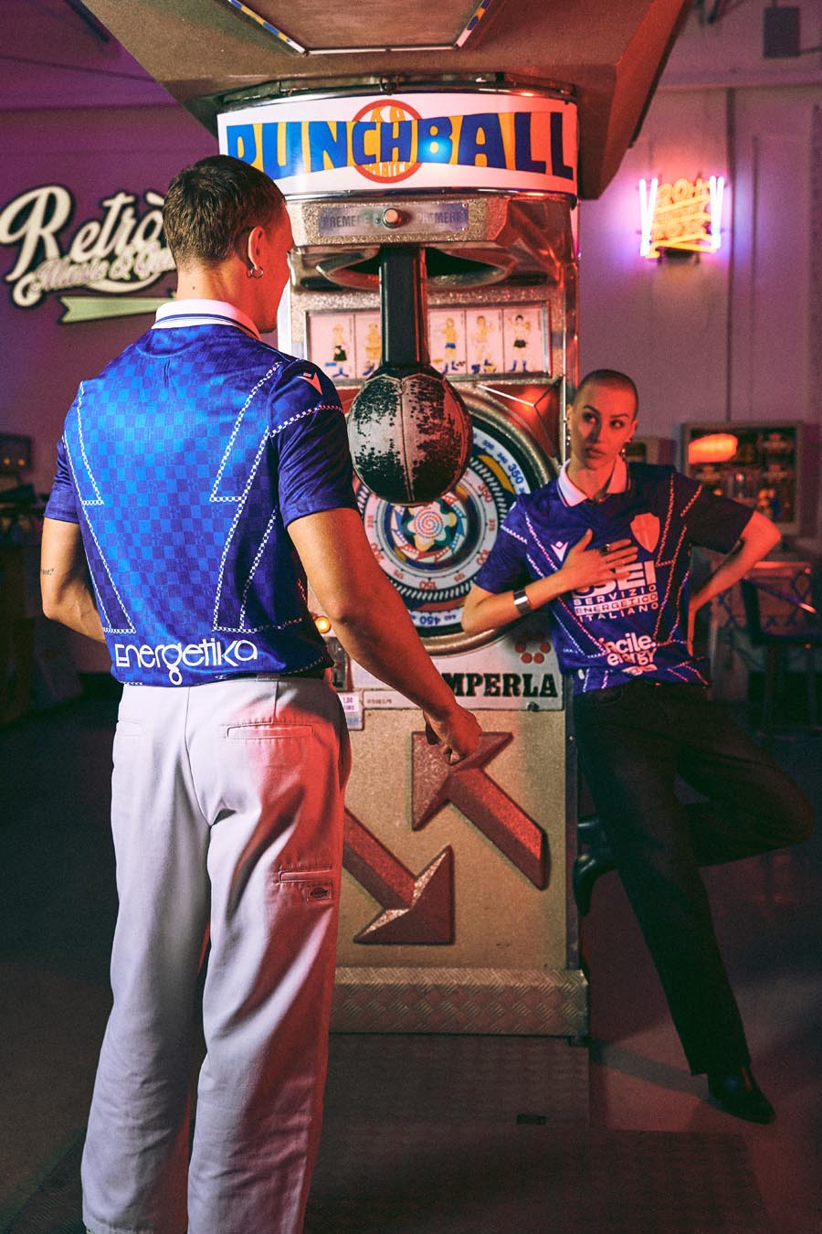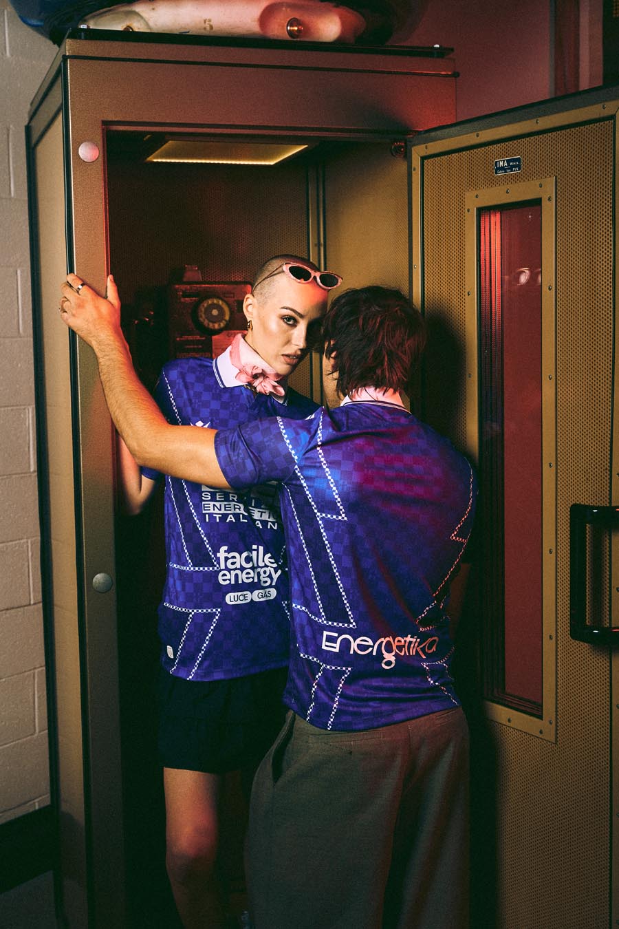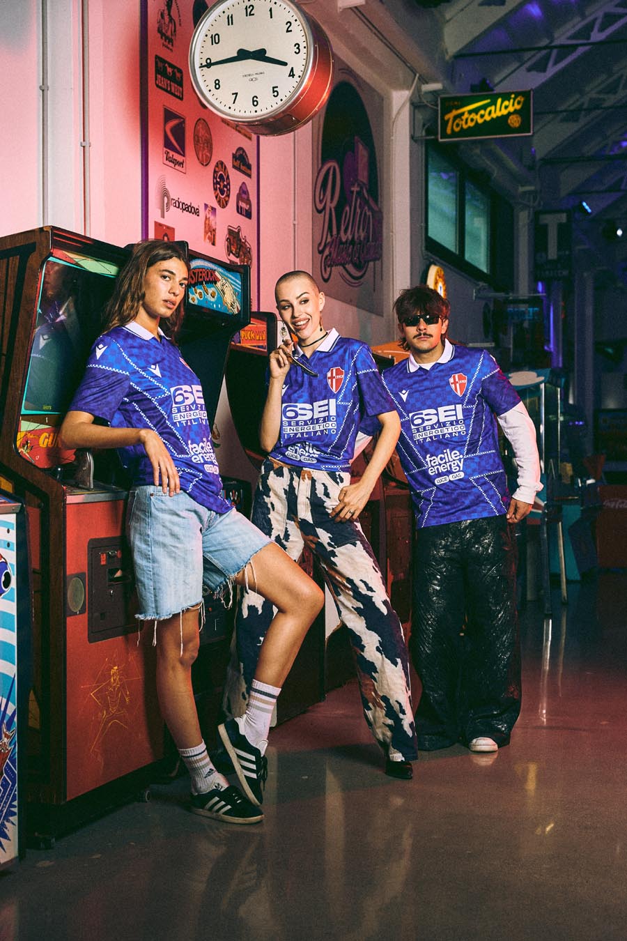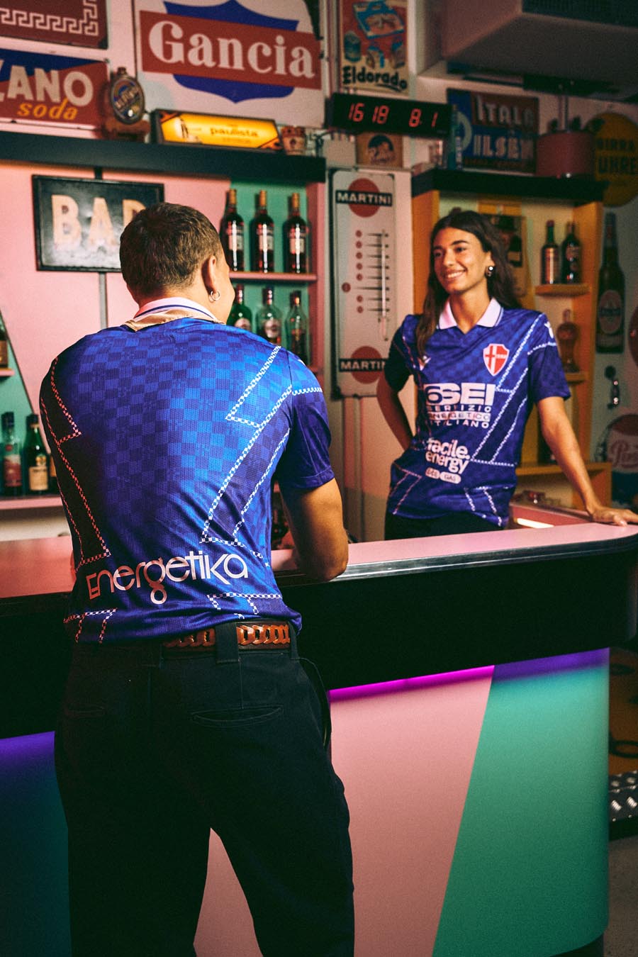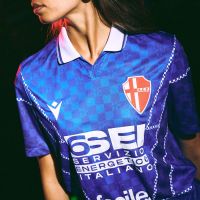 La nuova maglia Third 2025/26 dell’AC Padova ha il collo a polo bianco in maglieria, con sottili righe in due diverse tonalità di blu nel bordo esterno. L’intero kit, prevalentemente blu acceso con dettagli blu scuro su fianchi e maniche, è caratterizzato da un design che trae ispirazione dalla moda anni ’80 e ’90, con bande diagonali che dai fianchi convergono verso il centro.