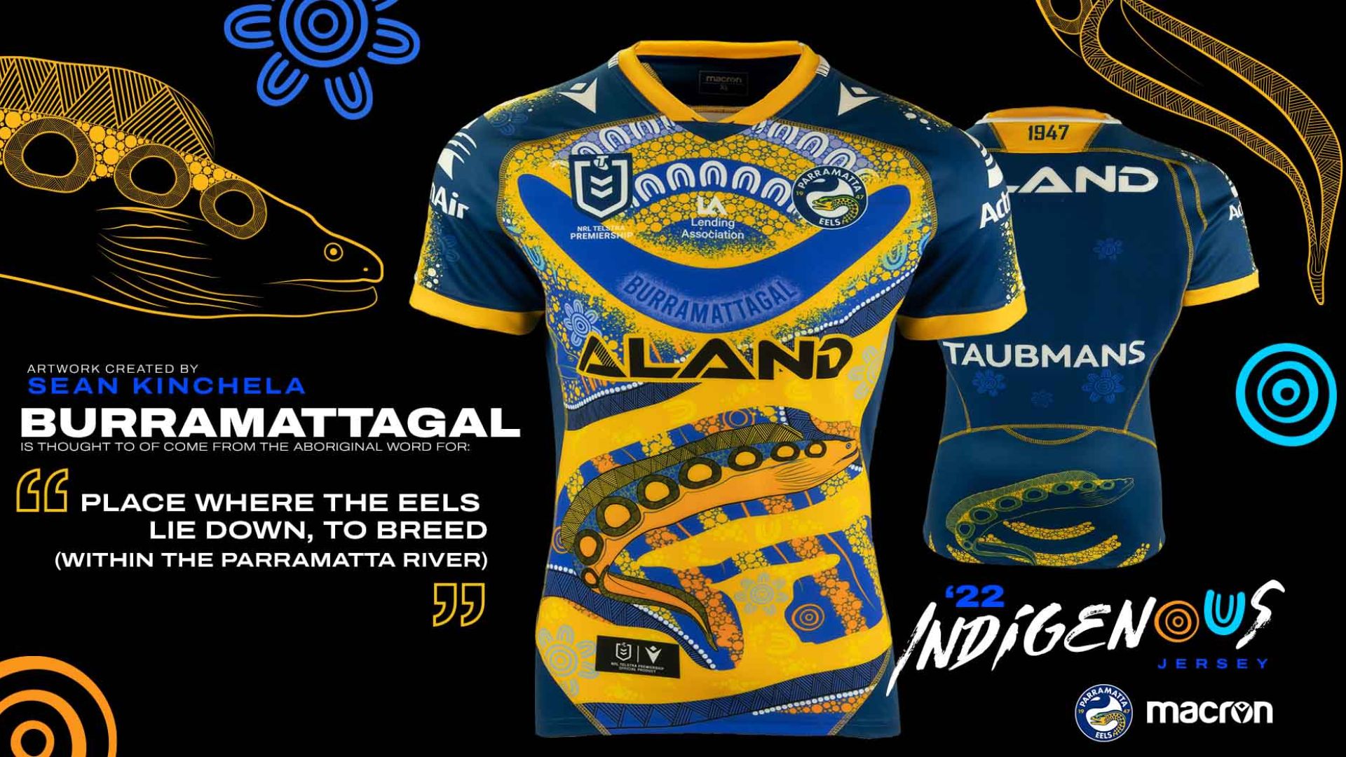 La storia, i simboli, i colori e l’identità dei Parramatta Eels, club australiano di rugby che milita nella NRL Telstra Premiership, sono rappresentati al meglio nella Indigenous Jersey realizzata da Macron, sponsor tecnico del club, sulla base dei disegni dell’artista aborigeno contemporaneo Sean Kinchela. Un prodotto che esalta la capacità di unire la tecnicità dei materiali alla sapienza creativa, grafica e artistica dell’ufficio stile del brand italiano.