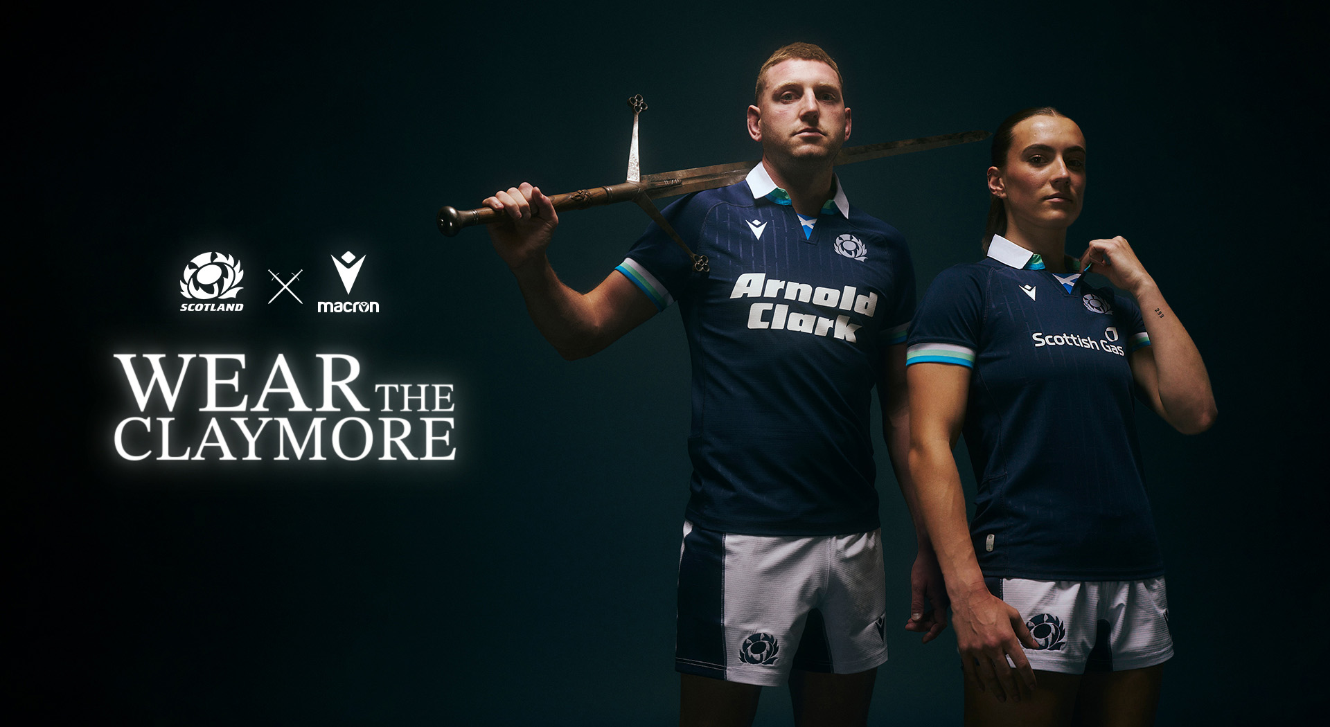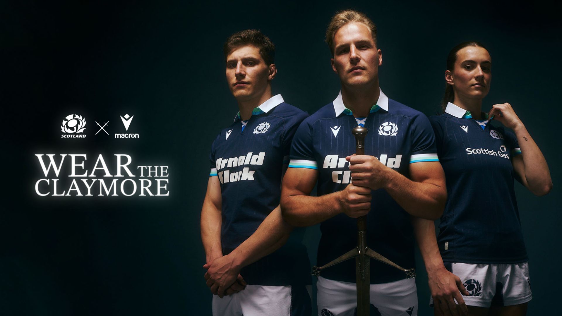 La nuova maglia Home 2024/25 delle nazionali di rugby scozzesi è blu navy con collo a polo bianco e risvolto interno ed esterno in verde chiaro e dettagli azzurri. Lo stesso abbinamento di colore si trova anche sui bordi manica. La maglia è caratterizzata da una grafica embossata, sia nella parte anteriore che posteriore, composta da un rigato verticale realizzato con il disegno delle ‘Claymores’, ovvero le antiche spade a due mani che i clan scozzesi usavano nel Tardo Medioevo. Il termine deriva dalla parola gaelica scozzese ‘claidheamh-mòr’, che si può tradurre in “grande spada”. Un elemento storico e in grado di racchiudere lo spirito di appartenenza di questo popolo. Per questo motivo anni fa la Claymore è stata scelta e adottata dai giocatori della Scozia come simbolo in rappresentanza dell’eredità storica condivisa da tutta la nazione scozzese.