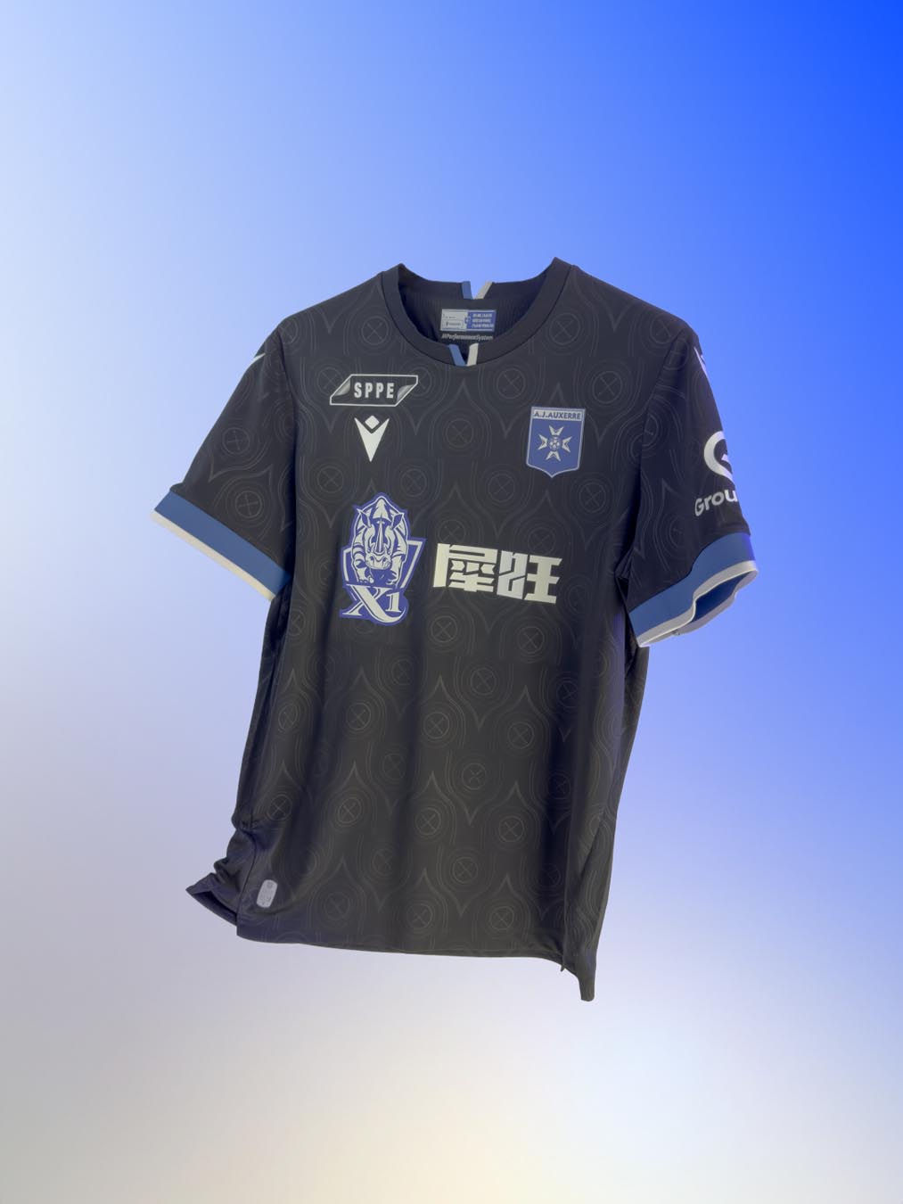 La nuova maglia Away 2025/26 dell’AJ Auxerre è a girocollo ed è total-black, tranne per i bordi manica biancoazzurri. A caratterizzare il kit è la grafica embossata, ripetuta su tutta la superficie del kit, che riproduce il quadrante della famosa Torre dell’Orologio, uno dei monumenti simbolo del centro storico della città francese. Capolavoro di architettura gotica, il suo orologio astronomico non solo mostra le ore del giorno, ma anche le ore lunari e le fasi della luna.