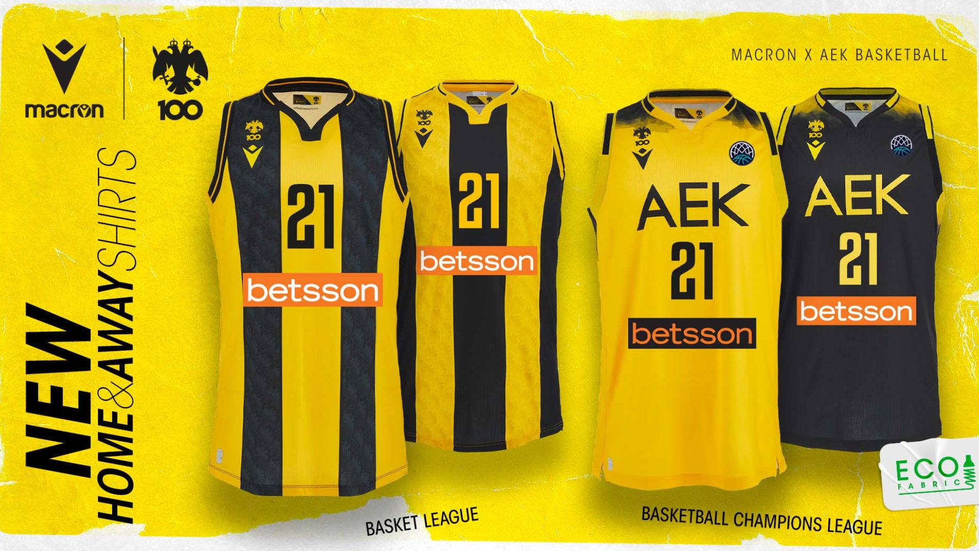 Per l’AEK BC, storico club del basket greco, la stagione 2023-2024 assume un particolare significato perché coincide con i festeggiamenti per il centenario della sua fondazione, avvenuta ad Atene nel 1924. I nuovi Game Set sono i primi realizzati da Macron, che proprio da questa stagione e per i prossimi cinque anni sarà al fianco dell’AEK BC nel ruolo di partner tecnico. Insieme al nuovo logo dedicato al centenario, abbinato al tradizionale simbolo dell’aquila bicipite, le nuove divise esprimono attraverso i colori e una grafica ricercata la storia e l’identità del club.