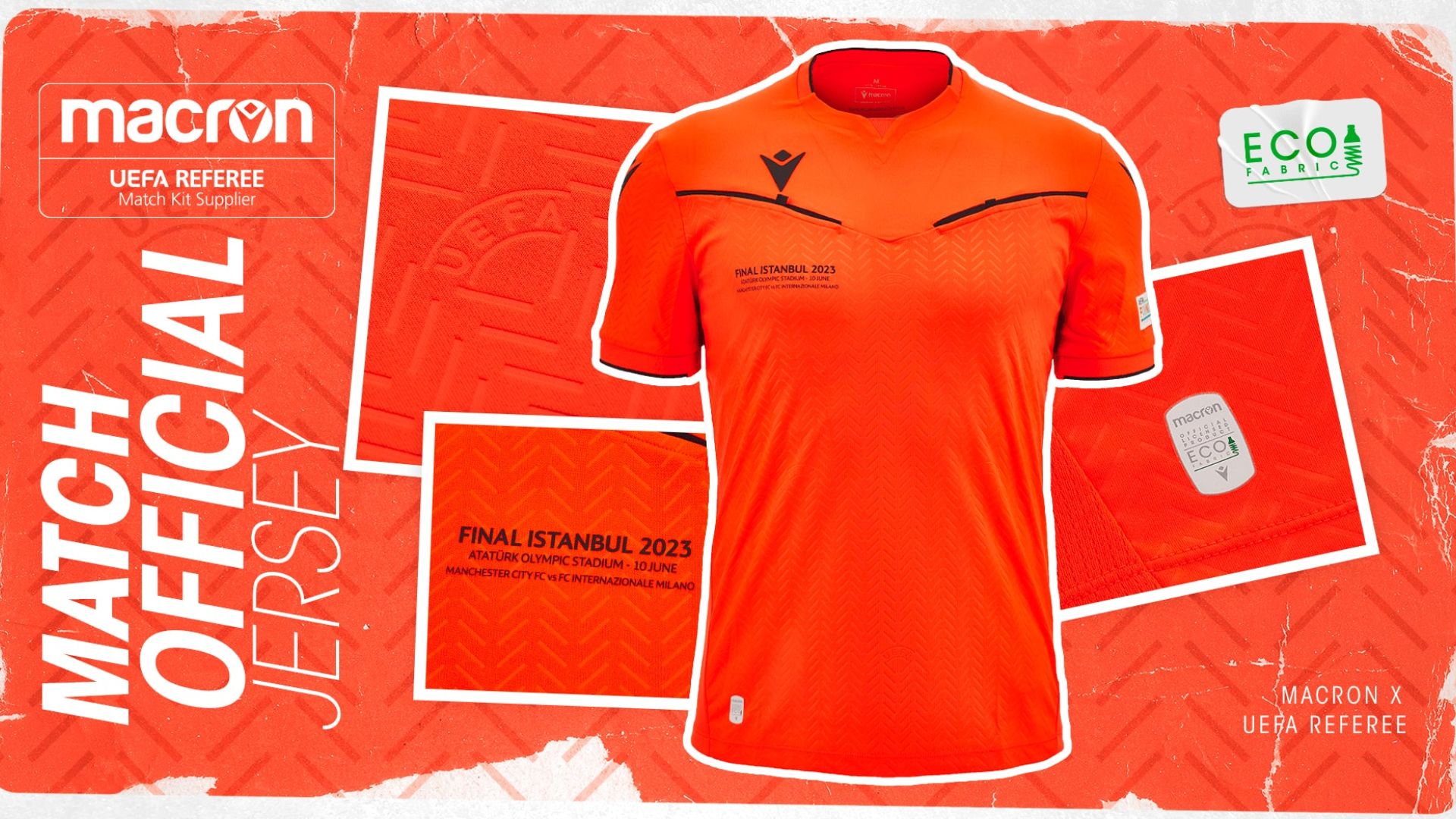 In occasione dell’attesa finale di UEFA Champions League tra Manchester City e Inter in programma sabato 10 giugno, sul campo dell’Atatürk Olimpic Stadium di Istanbul farà il proprio esordio la nuova divisa degli arbitri UEFA, realizzata da Macron in qualità di “Official UEFA Referee Match Kit Supplier”.