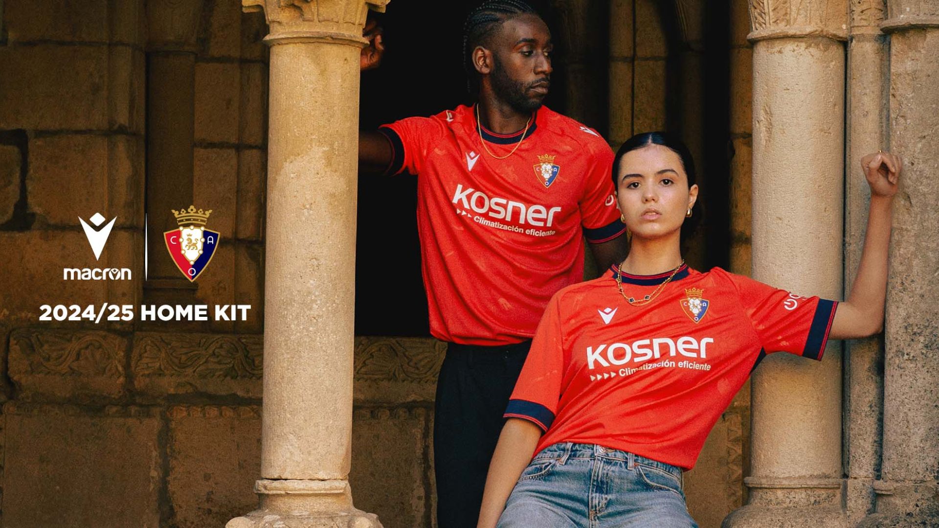 La nuova ‘Home’ dell’Osasuna è nel classico colore rosso, con dettagli in blu intorno al girocollo e sui bordi manica. Il dettaglio distintivo della T-shirt è la stampa in rilievo di venti icone che rappresentano la cultura della Navarra, impresse su tutto il capo con la tecnica dell’embossing. I simboli rappresentati sulla T-shirt sono: il carciofo, l’espadrilla, il toro di San Fermín, l’otre di vino, l'”eguzkilore”, l'”Hartza”, la “laya”, il “Momotxorro”, il “kaiku”, il cappello dei “joaldunak”, la Castildetierra delle Bardenas Reales, la pecora della Navarra, il “pañuelico”, la “pelota mano”, la “laxoa”, il sigillo di Teobaldo I, l'”aizkolaritza”, il “toro de fuego”, i falò di San Juan e le campane della Navarra.