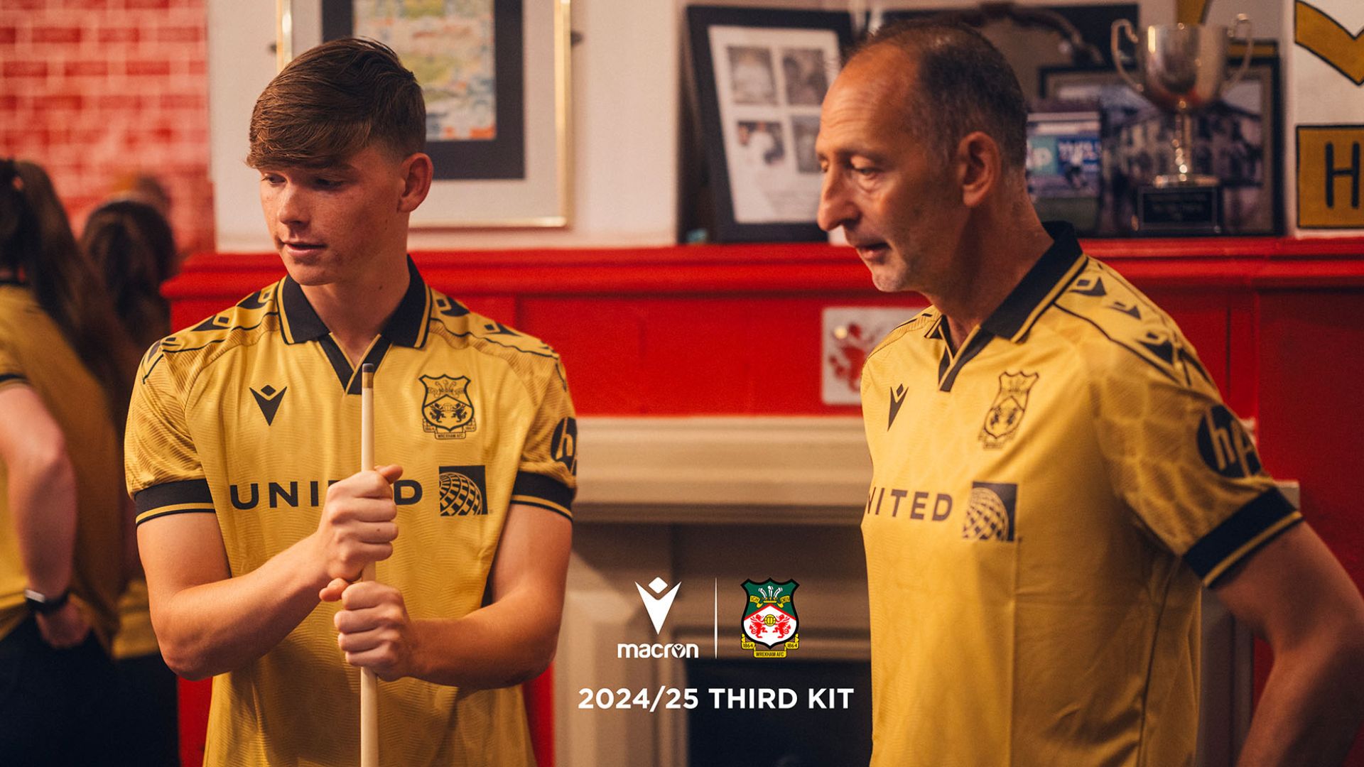 La nuova maglia Third 2024/25 del Wrexham AFC è color oro, con collo a polo nero con fini righe dorate nello stesso stile vintage presente anche nella versione Home. Lo stesso abbinamento di colori è inoltre presente anche sui bordi manica. La maglia è caratterizzata da un pattern all over con il disegno ripetuto delle scaglie del drago, che sulle maniche sono in stampa sublimatica, mentre sul corpo anteriore della maglia in grafica embossata. Il backneck è personalizzato con etichetta a sfondo rosso con al centro una banda diagonale bianca-verde-oro, il logo del club, il logo Macron e la scritta ‘Designed in Bologna’, a certificare ed evidenziare come ogni capo sia ideato, progettato e sviluppato nel Macron Campus.