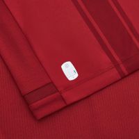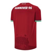 La ‘Special Edition’ dell’Hannover 96 è una maglia a girocollo con bordo in maglieria bianco. I colori sociali del club della Bassa Sassonia sono presenti sui bordi manica nelle tre righe nero-bianco-verde. La maglia è in rosso cardinale con tre bande verticali dello stesso colore ma di tonalità più scura. Sul petto, a destra, ricamato in bianco, c’è il Macron Hero, mentre a sinistra in stampa siliconata lo stemma della squadra tedesca. Poco sotto, al centro del petto, su fondo bianco appare la scritta LOVE HANNOVER HATE RACISM. Il backneck è personalizzato con il logo dell’Hannover 96 accompagnato dal motto “NIEMALS ALLEIN!” (“Mai da soli!”), il logo Macron e la scritta Designed in Bologna a certificare ed evidenziare come ogni capo sia ideato, progettato e sviluppato nel Macron Campus. Il motto del club è ripreso, in bianco, anche nel retro-collo esterno.