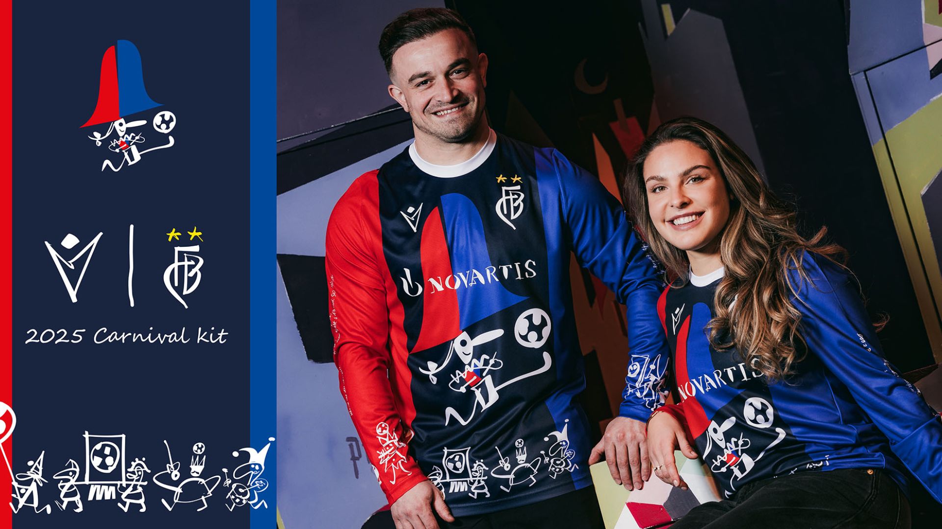 Il Carnival Kit 2025 Special Edition è a maniche lunghe e con girocollo bordato di bianco. Il corpo centrale è in blu navy con al centro il disegno di una tipica maschera del Fasnacht che calcia un pallone. La manica e fianco destro sono in rosso mentre quella sinistra in una tonalità più chiara di blu. Tutta la maglia è un inno al carnevale con disegni in bianco sul fondo maglia sia anteriore che posteriore e anche sui polsi delle maniche.