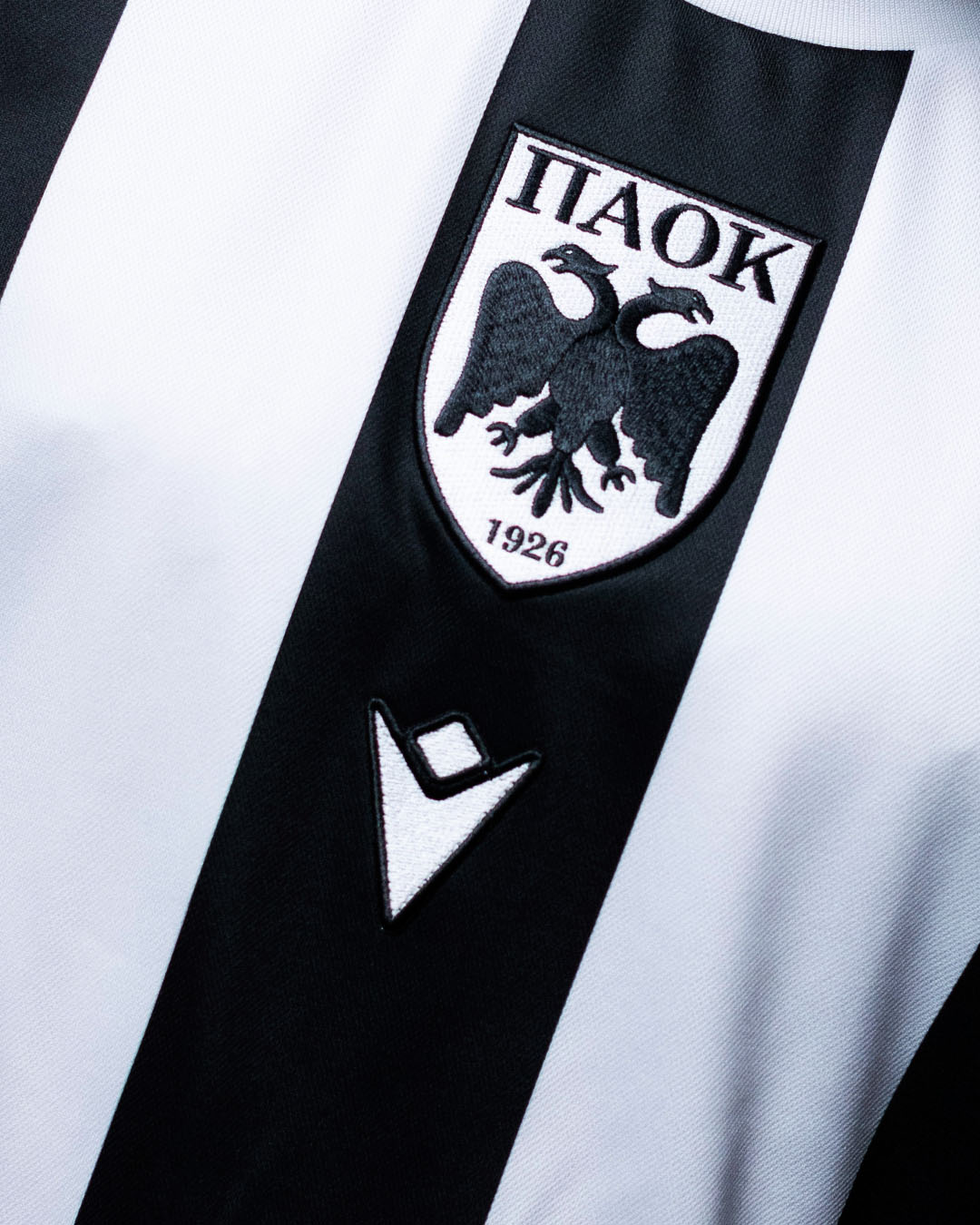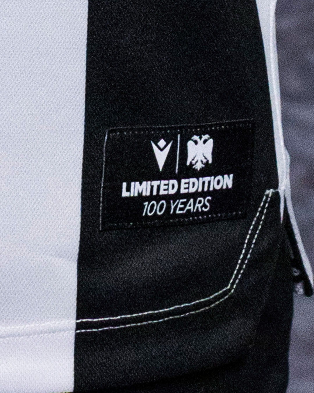 Nel retrocollo esterno sono invece ricamate in oro le due date 1926 – 2026, mentre nell’angolo in basso a sinistra è inserita una label ricamata coi loghi affiancati di Macron e del club posizionati sopra la scritta ‘LIMITED EDITION 100 YEARS’. Solo nel fondo maglia posteriore è infine posizionata anche una banda siliconica personalizzata con la scritta bianca su fondo nero “ΕΜΕΙΣ ΜΑΖΙ ΓΙΑ ΜΙΑ ΖΩΗ / ΠΑΟΚ 1926-2026” (Insieme per tutta la vita / PAOK 1926-2026).