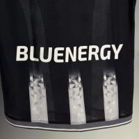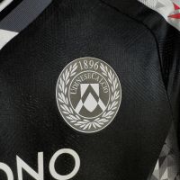 La divisa Home 2025-26 dell’Udinese Calcio segue una linea originale ed innovativa, che si discosta dallo stile adottato nelle ultime stagioni, pur mantenendosi nel solco della tradizione del club. Il disegno delle bande bianconere non è completamente verticale, ma vede una curvatura verso l’esterno delle linee laterali – soluzione già adottata nelle stagioni 2005/06 e 2006/07 – mentre quelle centrali sono spezzate da un raffinato effetto sfumato. Il nero torna così ad essere il colore prevalente dell’Home Kit dell’Udinese Calcio dopo otto anni, richiamando alla memoria anche la divisa della stagione 2004/05, quella della prima storica qualificazione del club friulano alla Champions League.