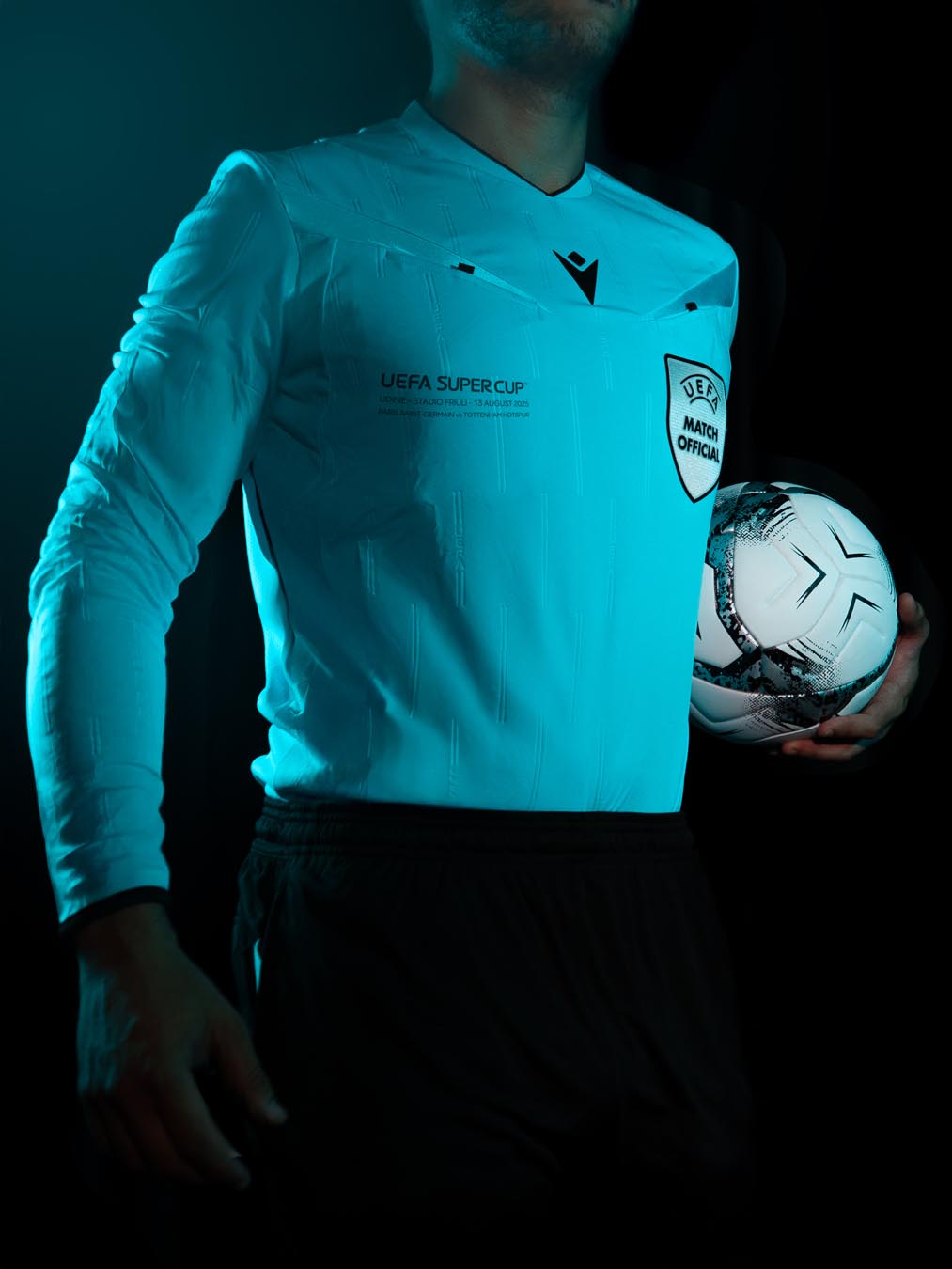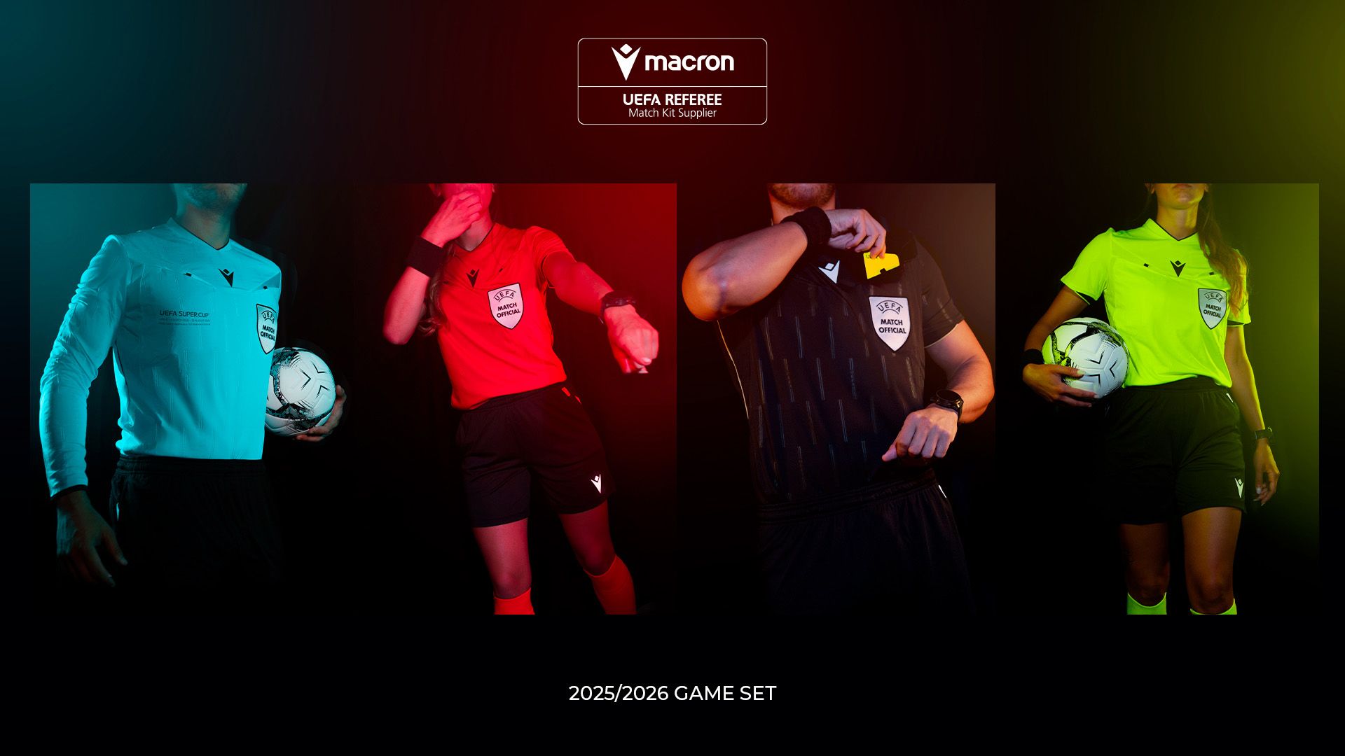 Dopo aver rinnovato la loro partnership, attiva dal 2019, Macron e UEFA presentano ufficialmente i nuovi Game Set per gli arbitri che dirigeranno le partite delle principali competizioni UEFA nelle prossime due stagioni.
