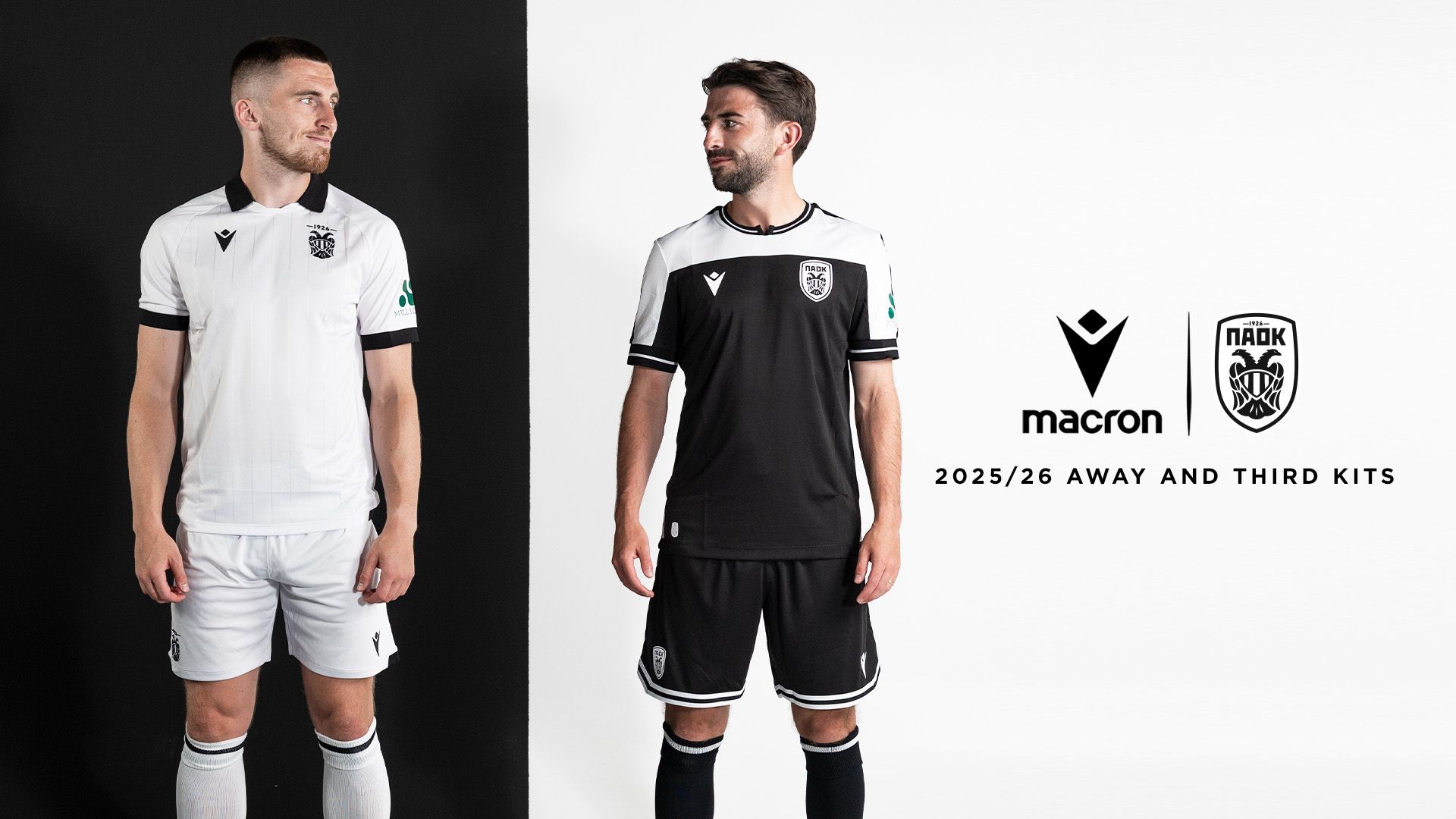 Il PAOK FC, dopo aver presentato la versione Home 2025/26, svela le nuove divise Away e Third che accompagneranno il club greco nella prossima stagione. Realizzati da Macron, partner tecnico del PAOK FC dal 2015, i nuovi kit sono caratterizzati dalla forte presenza dei colori simbolo del club, il nero e il bianco, integrati nel design con pesi e combinazioni diverse.
