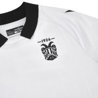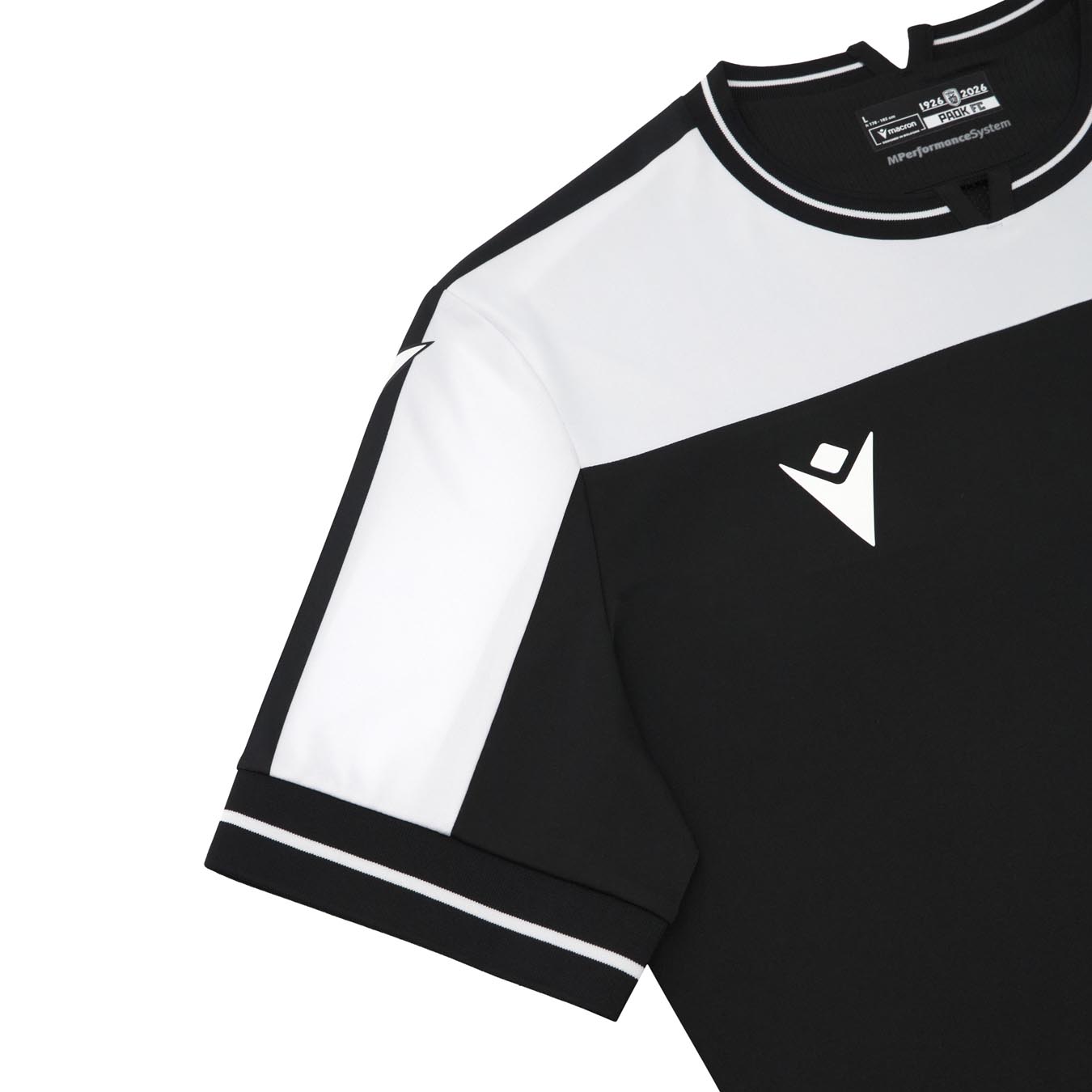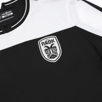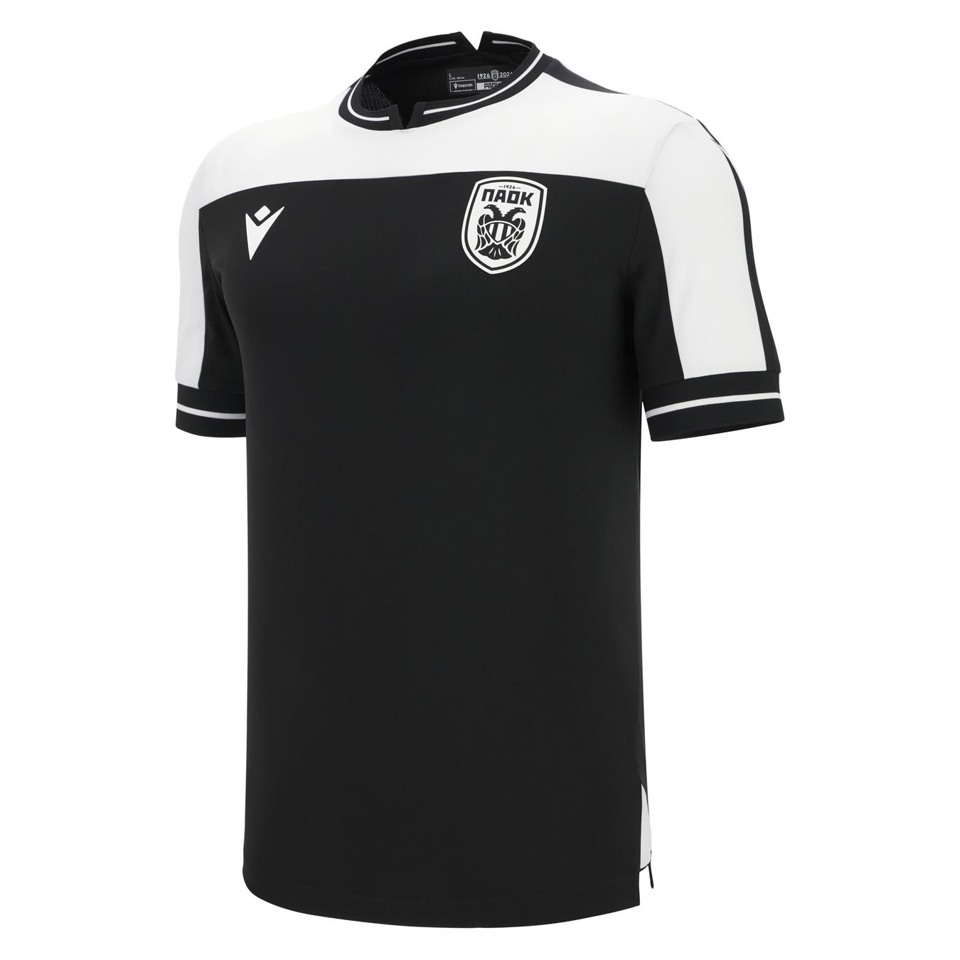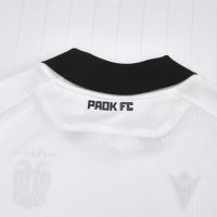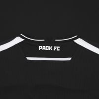 La maglia Away 2025/26 del PAOK FC si ispira a quella utilizzata in trasferta nella stagione 2000/01, quando il PAOK vinse la sua terza Coppa di Grecia. A girocollo con dettagli bianconeri, così come i bordi manica, la maglia è nera con spalle e maniche caratterizzate da un’ampia banda bianca. L’etichetta nel backneck interno è personalizzata con lo stemma del club al lato del quale sono presenti le due date 1926 e 2026, a rendere omaggio ai cento anni di vita del PAOK. Sotto lo stemma la scritta PAOK FC, quindi il logo Macron e la scritta ‘Designed in Bologna’, che certifica come ogni capo sia ideato, progettato e sviluppato nel Macron Campus. Sul petto in stampa siliconata bianca, a destra il Macron Hero, a sinistra, lo stemma del club. Nel retrocollo appare in bianco, la scritta PAOK FC. I pantaloncini sono neri con righe bianche intorno al bordo coscia, i calzettoni neri hanno una riga bianca sul bordo superiore. Il tessuto utilizzato per questo kit è Eco Softlock.