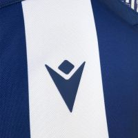 Il kit casalingo è completato da una doppia opzione per i pantaloncini: blu con bande bianche laterali oppure bianchi con bande blu laterali. I calzettoni blu navy hanno il bordo superiore bianco. La nuova ‘Home’, come tutti i game set prodotti da Macron per i propri club, è realizzata in Eco Fabric, tessuto in poliestere al 100% proveniente da plastica riciclata. Nel caso specifico per la maglia è stato utilizzato Eco Piola, che alla morbidezza e alla elasticità aggiunge anche un deciso tocco rétro.