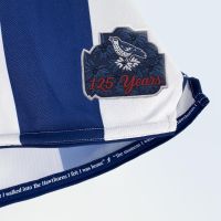 Nel retrocollo esterno è infine stampato lo speciale logo celebrativo di quest’importante anniversario, con all’interno la scritta ‘125 YEARS AT THE HAWTHORNS – SINCE 1900’ e sulla quale è appoggiato un tordo su un fiore di biancospino.