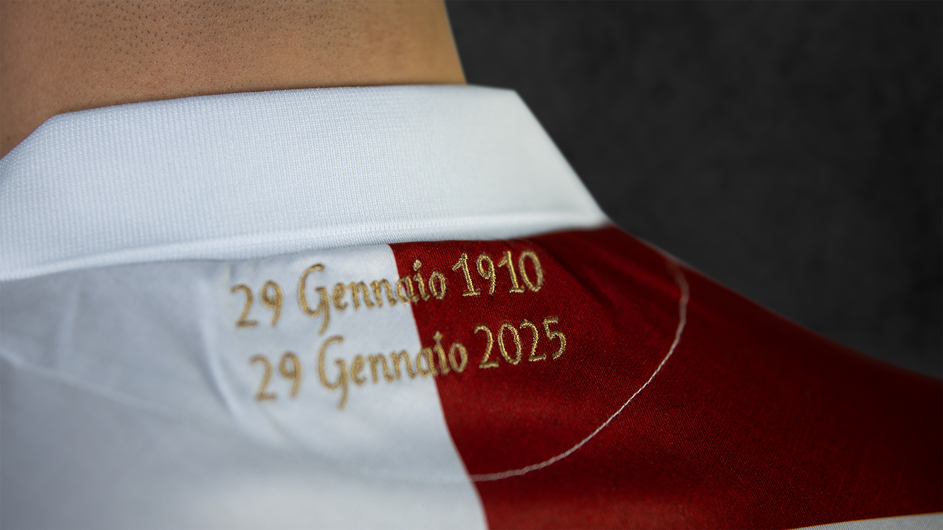 L’Anniversary Kit ha il collo a polo bianco ed è divisa verticalmente in due metà: a destra rossa, a sinistra bianca con maniche a colori invertiti, il tutto su un tessuto sublimato a creare un effetto vintage. Sul petto, a destra, è ricamato in rosso bordato oro il Macron Hero, mentre a sinistra, lato cuore, è applicato il logo dell’AC Padova in versione vintage, che si rifà a quello utilizzato dalla squadra veneta fino al 1977. Il backneck è personalizzato con i colori e lo stemma del club, la scritta NOI SIAMO I PADOVANI, il logo Macron e la scritta ‘Designed in Bologna’ che certifica come ogni capo sia ideato, progettato e sviluppato nel Macron Campus. Nel retrocollo esterno sono ricamate in oro due date: 29 gennaio 1910 e 29 gennaio 2025, per celebrare i 115 anni di storia dei biancoscudati. Un altro dettaglio è nella scritta, in stampa sublimatica sul fianco, che riporta una frase del suo primo presidente, il barone Giorgio Treves de’Bonfili (sceso anche lui in campo nell’amichevole del 20 febbraio 2010), e che recita “I colori saranno quelli della città di Padova: il bianco e il rosso”.