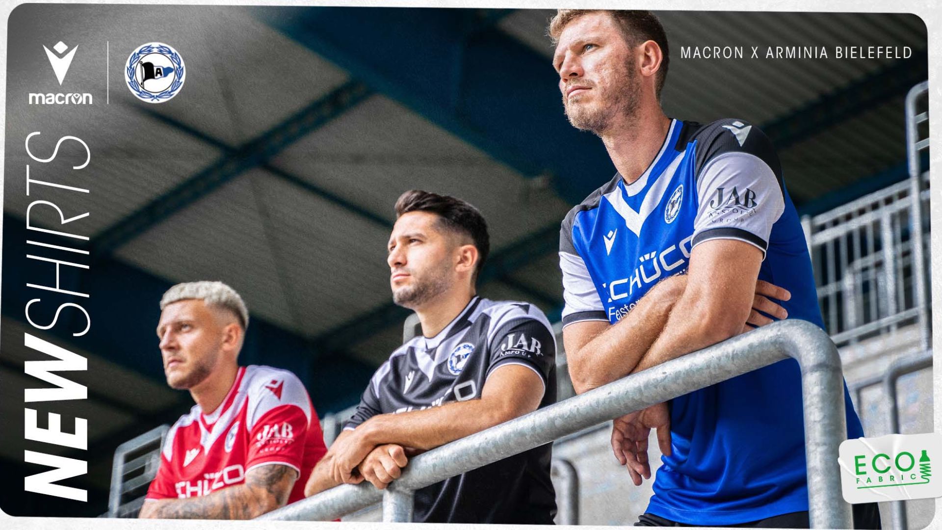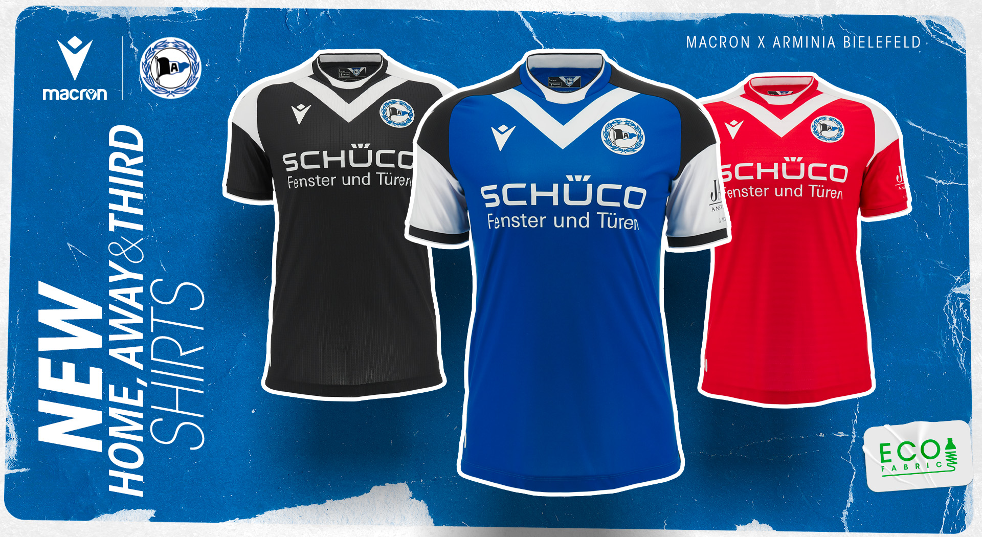 L’Arminia Bielefeld, storico club del calcio tedesco, ha presentato i nuovi kit gara che i “die Arminen” indosseranno nel corso della prossima stagione agonistica. Divise che insieme alla tradizione e i simboli del club, proseguono nella sensibilizzazione ai temi della sostenibilità e dell’ambiente grazie al tessuto utilizzato da Macron per realizzarle: Eco Fabric, tessuto poliestere 100% proveniente da plastica riciclata.