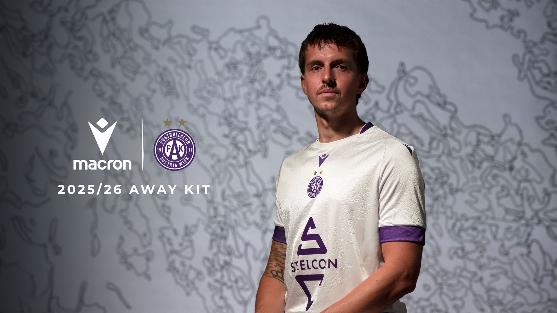 L’FK Austria Wien, dopo la presentazione della maglia Home avvenuta nel corso dei playoff scudetto della Admiral Bundesliga, svela ai propri tifosi il nuovo Away Kit 2025/26 realizzato da Macron e che i Veilchen (i violetti) indosseranno nel corso della prossima stagione nei match lontani dalla Generali Arena. Una maglia caratterizzata da un elegante colore bianco con dettagli viola, arricchito da un disegno in rilievo che riproduce in astratto la topografia austriaca e in particolare dell’area metropolitana di Vienna.