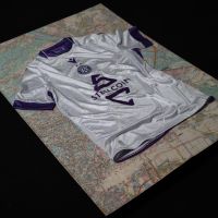 La nuova Away 25-26 dell’FK Austria Wien è bianca con girocollo e bordi manica in viola. Su tutta la maglia è presente una grafica astratta, che riproduce le forme e i contorni di una carta topografica con riferimento in particolare al territorio austriaco e all’area metropolitana di Vienna. La grafica è embossata sul corpo della maglia, mentre sui dettagli viola viene riprodotta in stampa sublimata tono su tono. Il Macron Hero, in stampa siliconata, è posto al centro del petto dove, poco sotto, è applicato anche lo stemma della squadra.