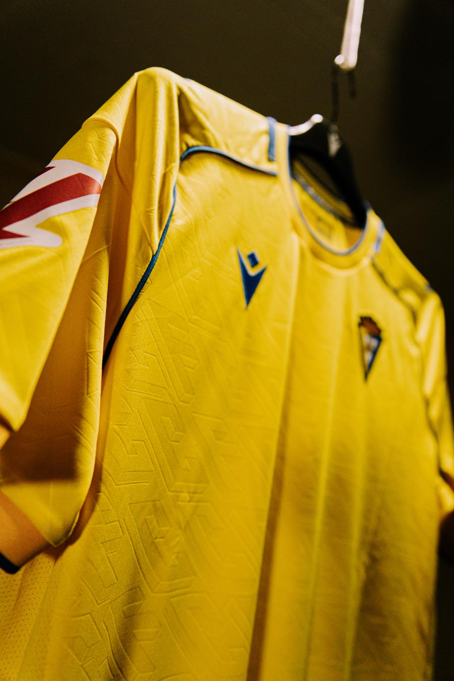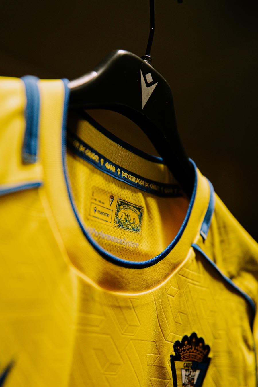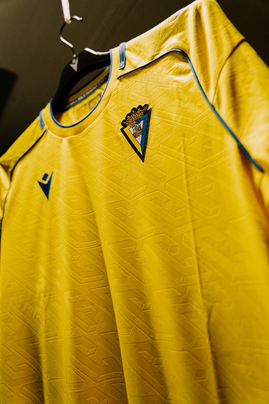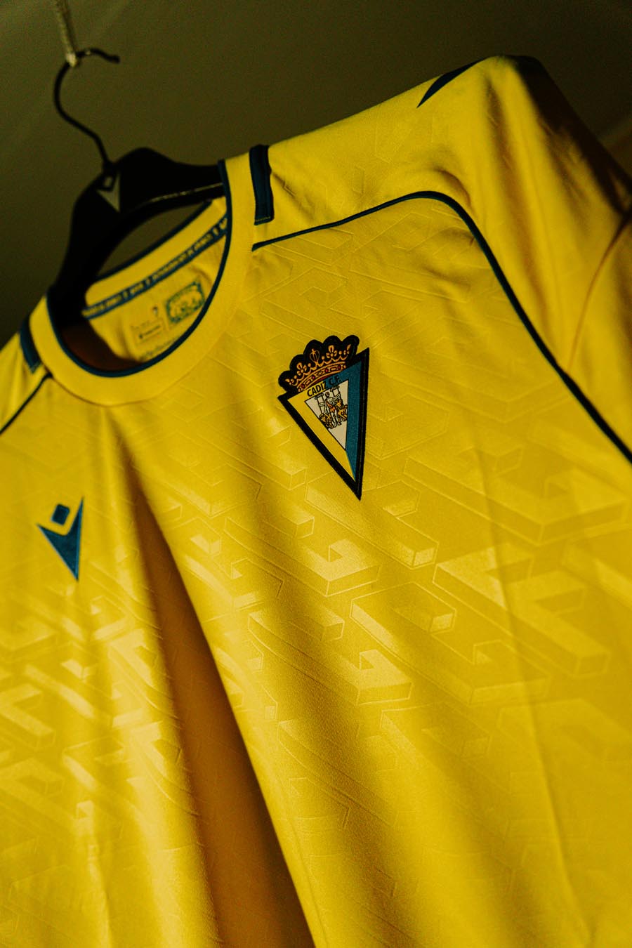 La nuova Home 2025/26 del Cádiz CF è nella tradizionale tonalità di giallo che contraddistingue il club andaluso, con l’aggiunta di un elegante piping blu royal a delimitare le maniche. Il collo è a girocollo con dettagli blu royal, colore che troviamo anche sui bordi manica al di sotto di una banda color ocra. Il corpo anteriore della maglia è caratterizzato da un motivo embossato composto, in forma ripetuta, dalle lettere CCF, acronimo del nome del club. Sul petto a destra, in blu royal, è ricamato il Macron Hero, a sinistra è applicata la patch con lo stemma del Cádiz CF.