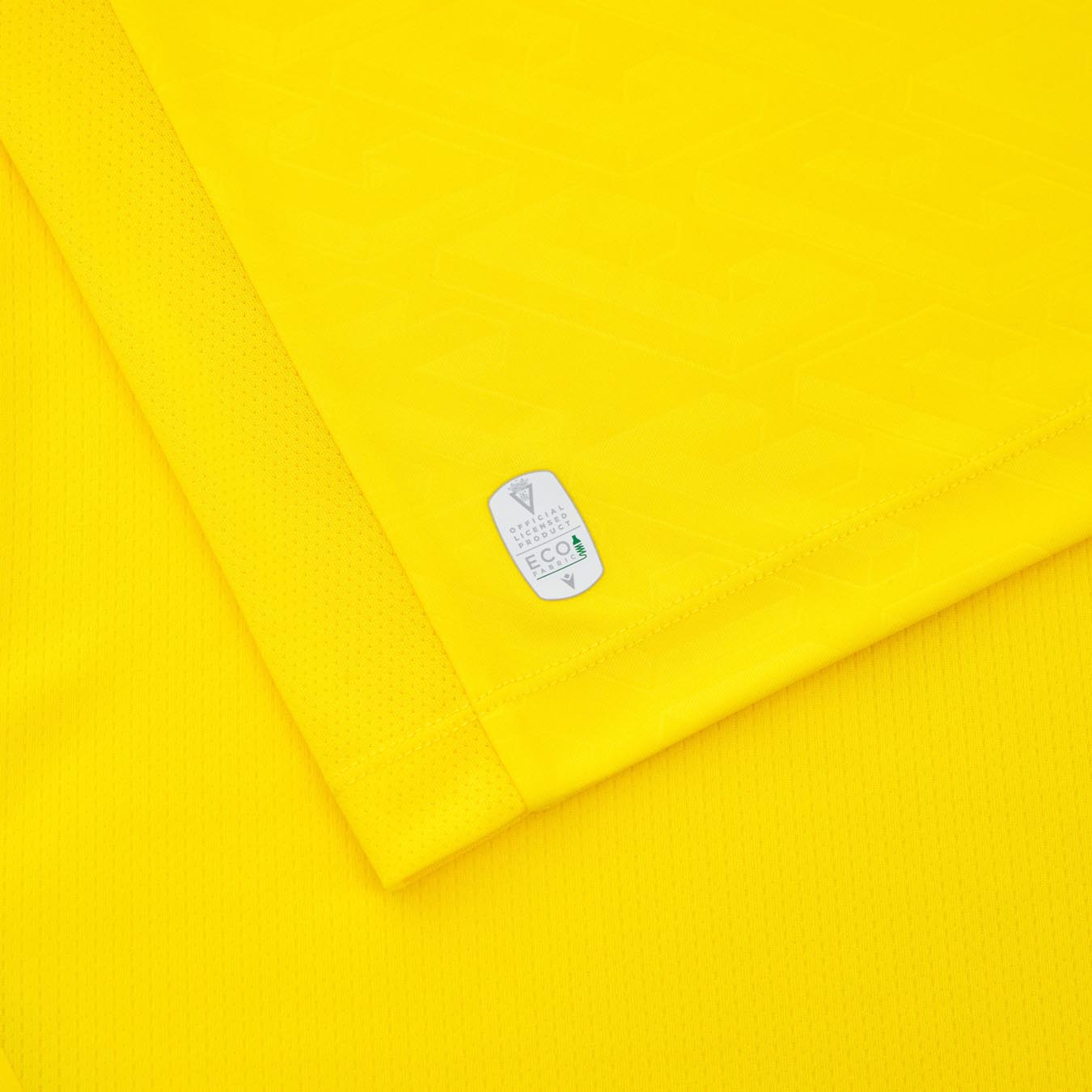Il principale tessuto utilizzato per la nuova Home del Cadiz CF è Eco Softlock. Il pannello posteriore con in Eco Baimi e gli inserti in Eco Mesh rendono il capo più leggero e traspirante. La nuova maglia, insieme agli altri capi della linea di abbigliamento realizzati da Macron per il club spagnolo, è disponibile sul sito macron.com.