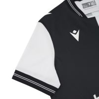 L’etichetta nel collo interno riprende il motivo a righe curve presente nella Home, in questo caso grigie su fondo nero. Al centro è presente il disegno del Baslerstab, simbolo araldico che rappresenta un bastone pastorale presente nella bandiera e nello stemma della città di Basilea, affiancato dalla scritta FC BASEL 1893 – SAISON 2025/26, insieme al logo Macron e alla scritta Designed in Bologna, che certifica come ogni capo sia ideato, progettato e sviluppato presso il Macron Campus. Nel retrocollo esterno è infine ricamato in nero il disegno del Baslerstab.
