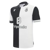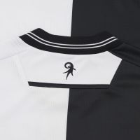 La nuova maglia Third 2025/26 dell’FC Basilea 1893 ha il colletto alla coreana nero con dettagli bianchi. La manica destra è bianca con bordo nero, la sinistra inverte i colori, nera con bordo bianco. Sul petto a destra è ricamato in bianco il Macron Hero, a sinistra, lato cuore, la versione monocromatica nera dello stemma dell’FC Basilea 1893 composto unicamente dall’acronimo FCB con le due stelle.