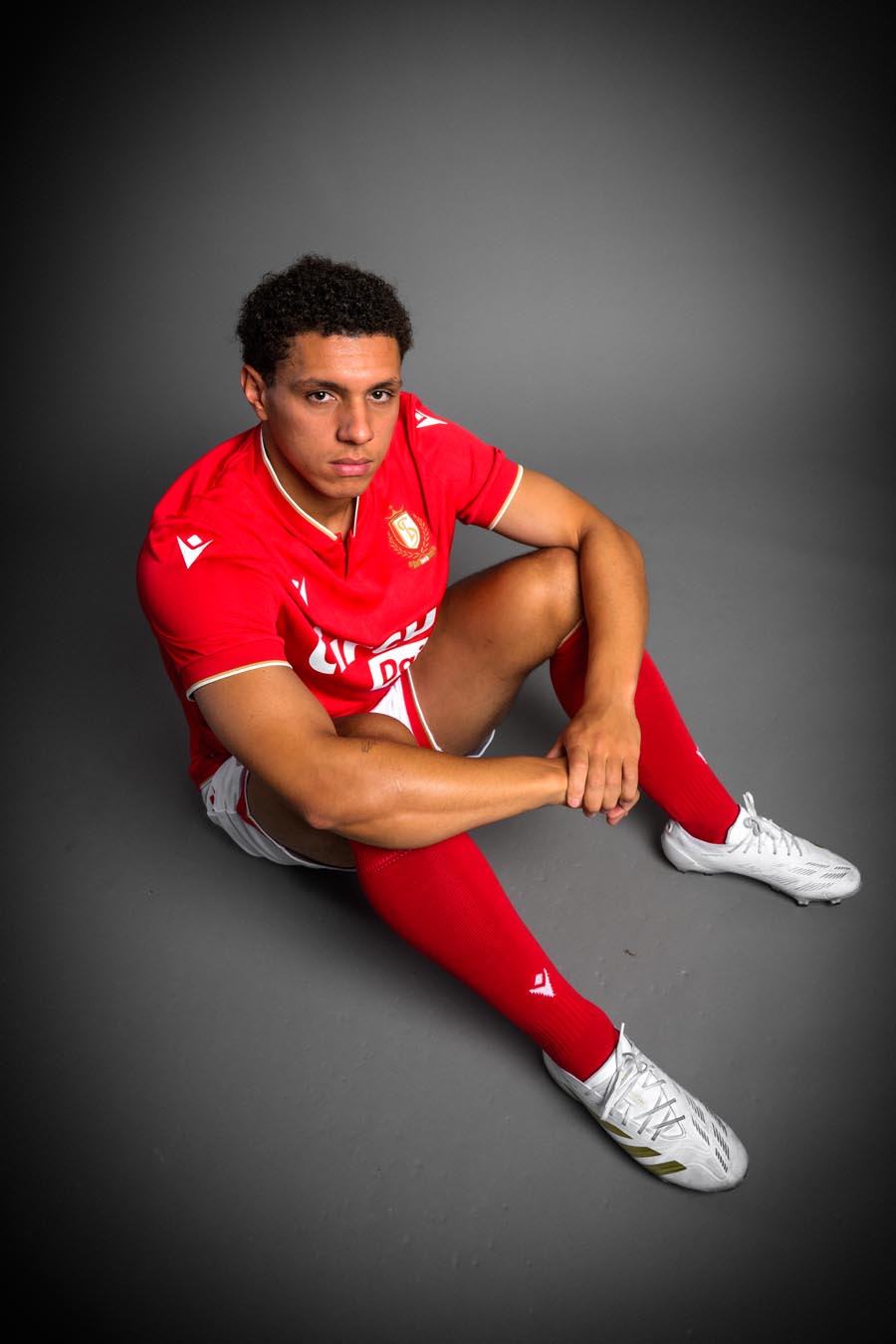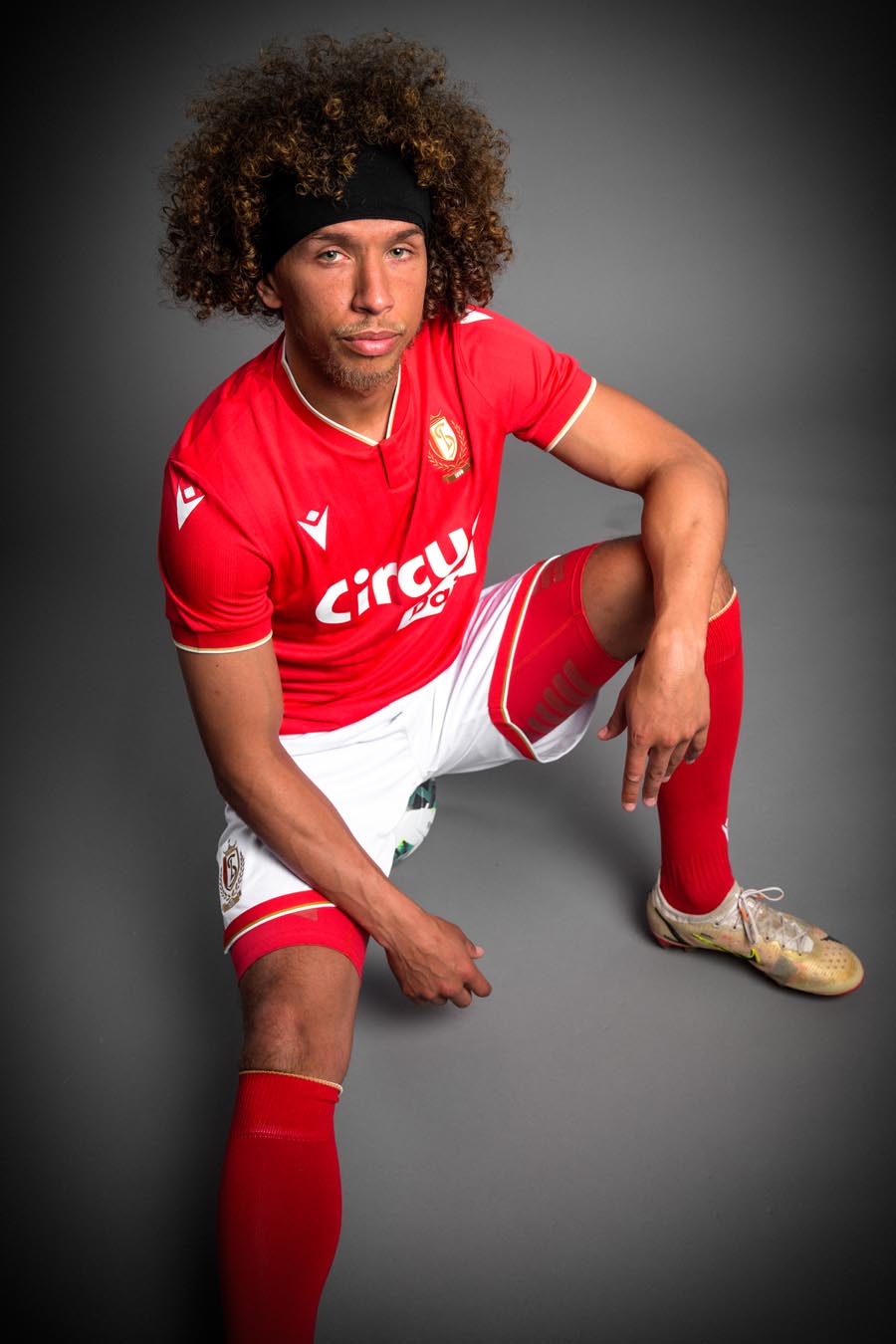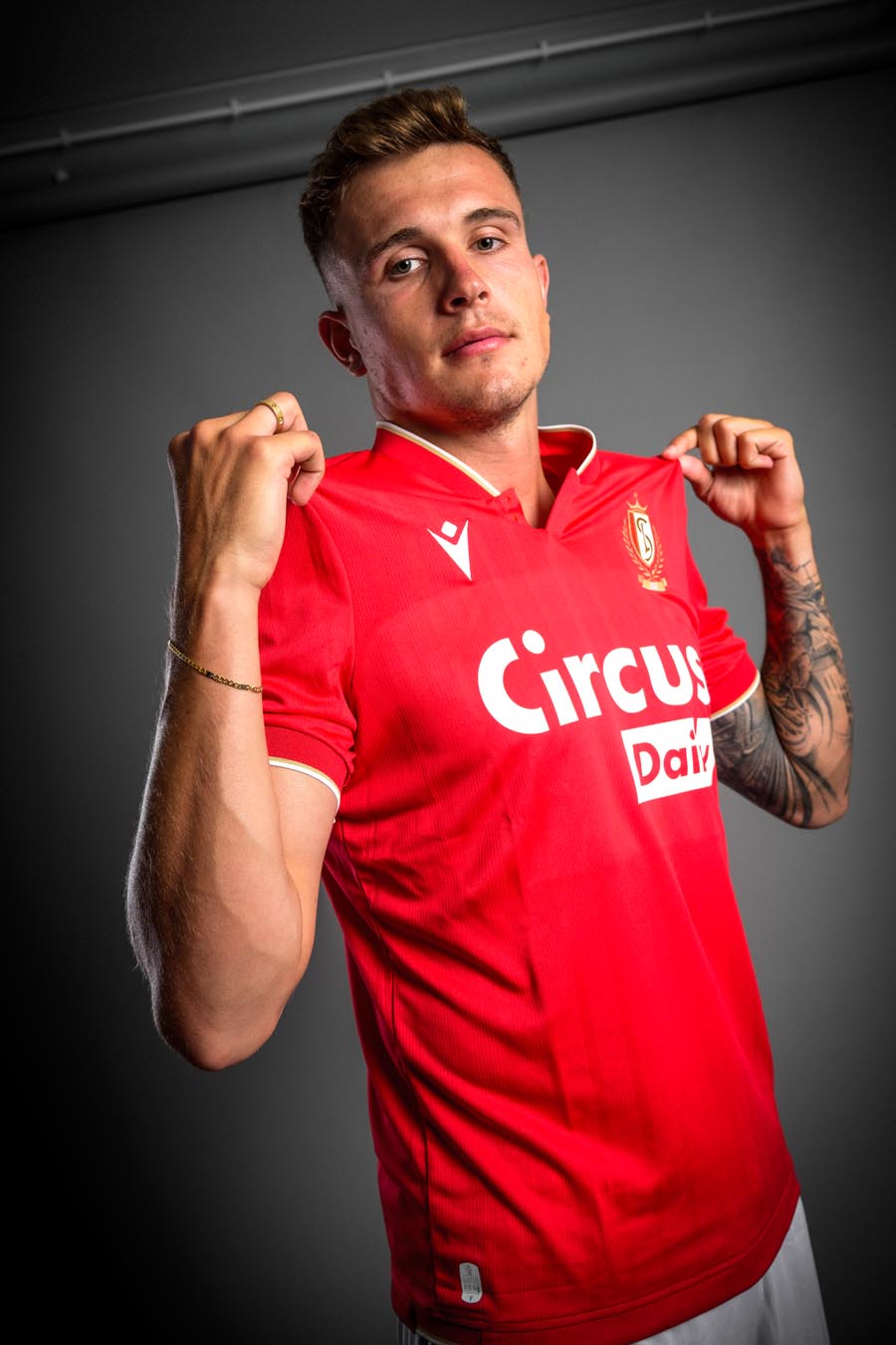 Sul bordo esterno posteriore del colletto è presente una stella dorata a significare i 10 campionati belgi vinti. Nel retrocollo esterno ritornano in bianco le parole PASSION, FIERTÉ, FERVEUR che rappresentano il DNA di questa squadra e dei suoi tifosi, capaci di ‘infiammare’ gli spalti dello Sclessin ad ogni gara. Un altro dettaglio che esprime identità e senso di appartenenza ai colori del club è nel tape siliconato interno, inserito nel fondo maglia posteriore e personalizzato con la scritta, ripetuta e in rosso su fondo dorato, ROUCHES DEPUIS 1898. Il game set casalingo è completato da pantaloncini bianchi con coulisse rosse e bande rosse con fine riga dorata sul bordo coscia, insieme ai calzettoni rossi con riga bianca e dorata sul bordo superiore.