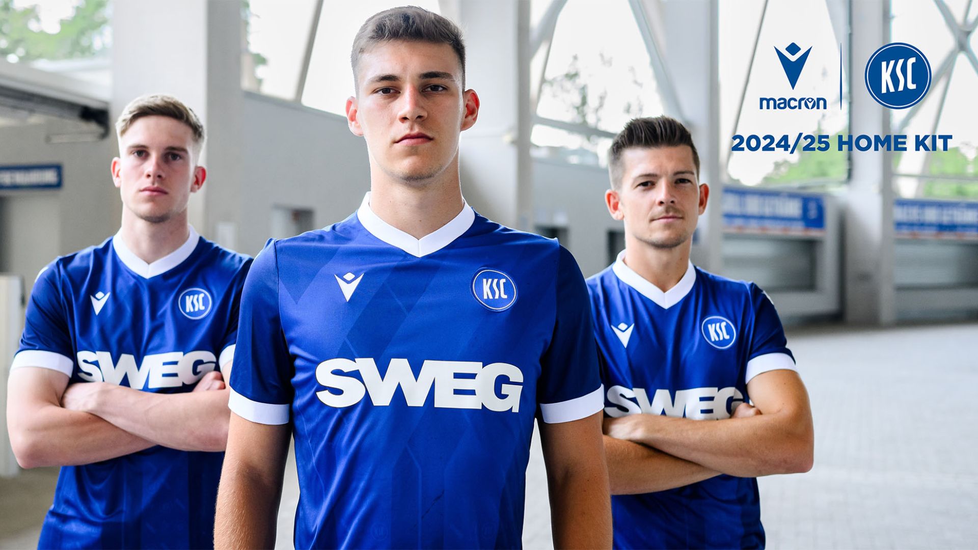 La nuova ‘Home’ del KSC è blu scuro e ha il collo a V con bordi in maglieria bianchi, colore presente anche sui bordi manica. Il backneck è personalizzato con i colori e il logo del club, la scritta EIN STÜCK HEIMAT (Un pezzo di patria), insieme al logo Macron e alla scritta Designed in Bologna a certificare ed evidenziare come ogni capo sia ideato, progettato e sviluppato presso il Macron Campus. Sul petto, a destra, è ricamato in bianco il Macron Hero, a sinistra lo stemma del Karlsruher SC. Nel retrocollo esterno, sempre in bianco, appare la scritta MEINE HEIMAT (La mia patria).