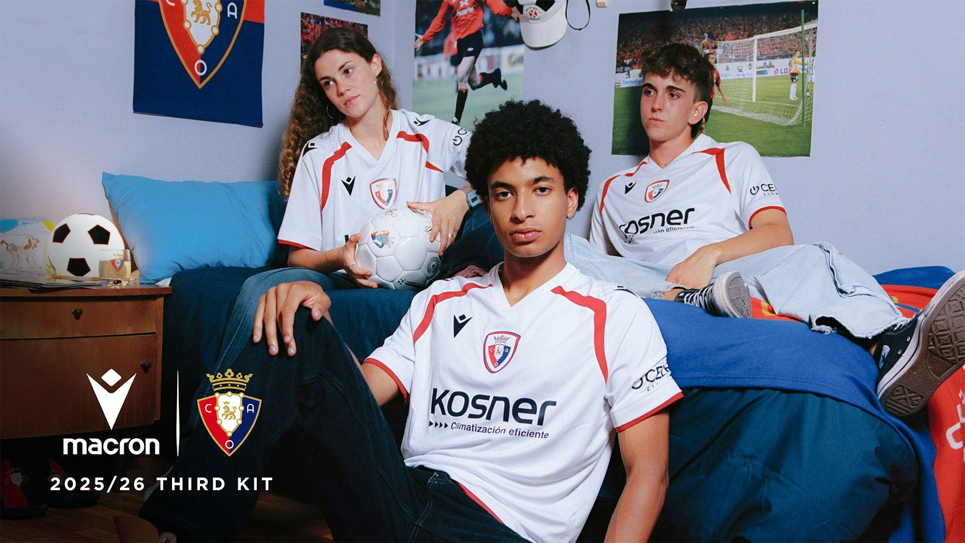 La presentazione del nuovo Game Set realizzato da Macron per il Club Atlético Osasuna si completa col nuovo Third Kit 2025/26 che la squadra navarra che milita nella LaLiga EA Sports indosserà nel corso della prossima stagione. Una terza maglia che, proseguendo nel tema di questa stagione, rende omaggio ad una stagione resa storica per via di una partecipazione alle coppe europee. In questo caso, il kit rievoca la divisa bianca indossata in Europa nella stagione 2006/07, quando il club prese parte per la prima volta nella propria storia alle fasi preliminari della UEFA Champions League (non riuscendo tuttavia a raggiungere la fase a gironi), per poi portare avanti una indimenticabile cavalcata in Coppa UEFA che li ha visti raggiungere la Semifinale.