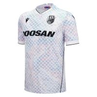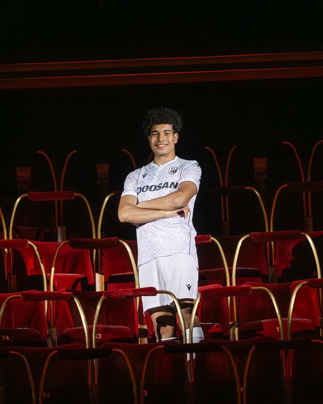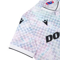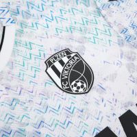 La nuova maglia Away 2025/26 dell’FC Viktoria Plzeň è bianca con collo alla coreana con fine riga nera, abbinamento cromatico presente anche sui bordi manica. La maglia è caratterizzata da un motivo grafico astratto, in stampa sublimata e all over, che si ispira al grande lampadario del Josef Kajetán Tyl Theatre di Plzeň, teatro costruito tra il 1899 e il 1902 in stile neorinascimentale con alcuni elementi Art Nouveau. Importante centro culturale, è uno dei monumenti più significativi della città. Il backneck è personalizzato con i colori, il logo del club e la frase AŤ STÁLE VÍTĚZÍ VIKTORIA (Che Viktoria vinca sempre), titolo dell’inno della squadra ceca, insieme al logo Macron e alla scritta ‘Designed in Bologna’ che certifica come ogni capo sia ideato, progettato e sviluppato nel Macron Campus.