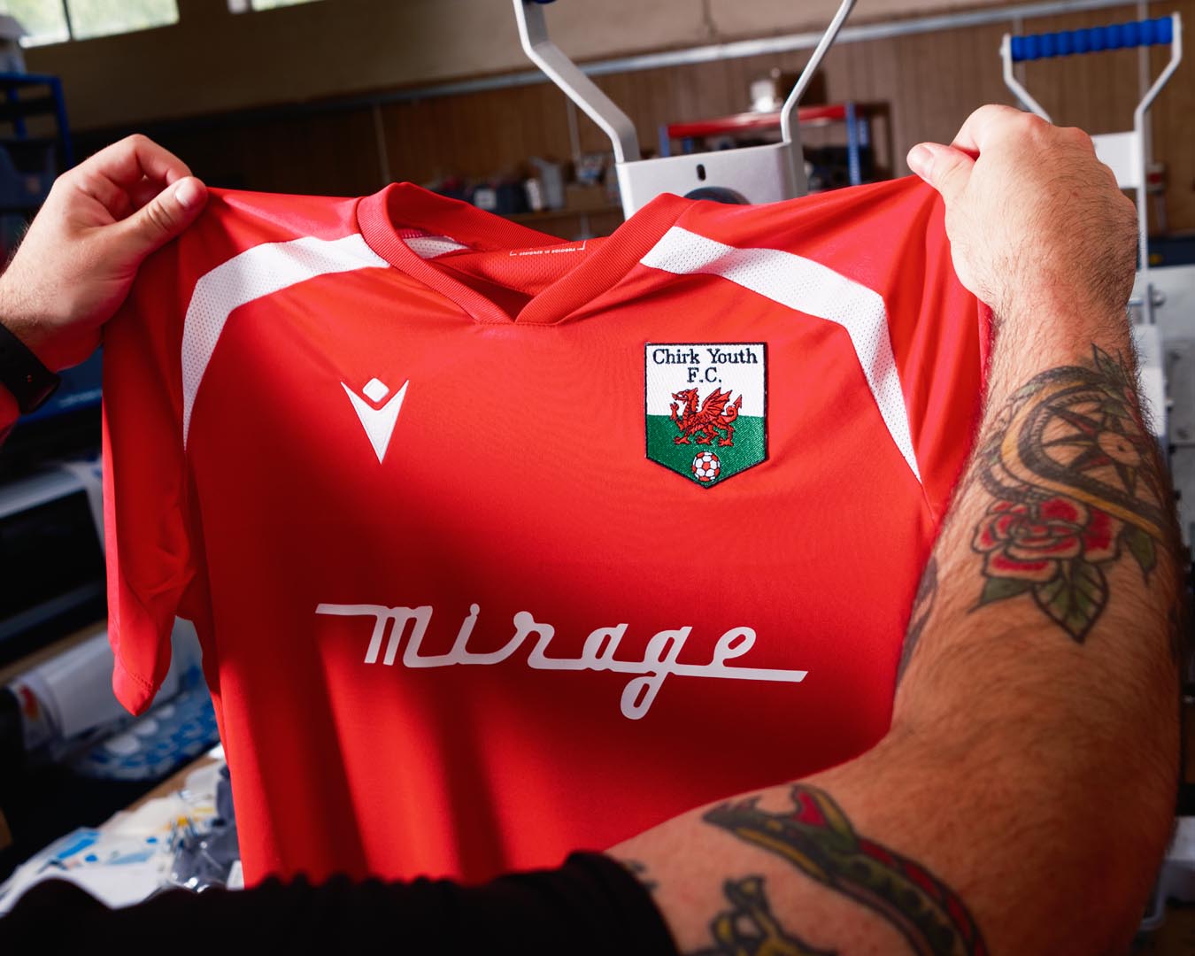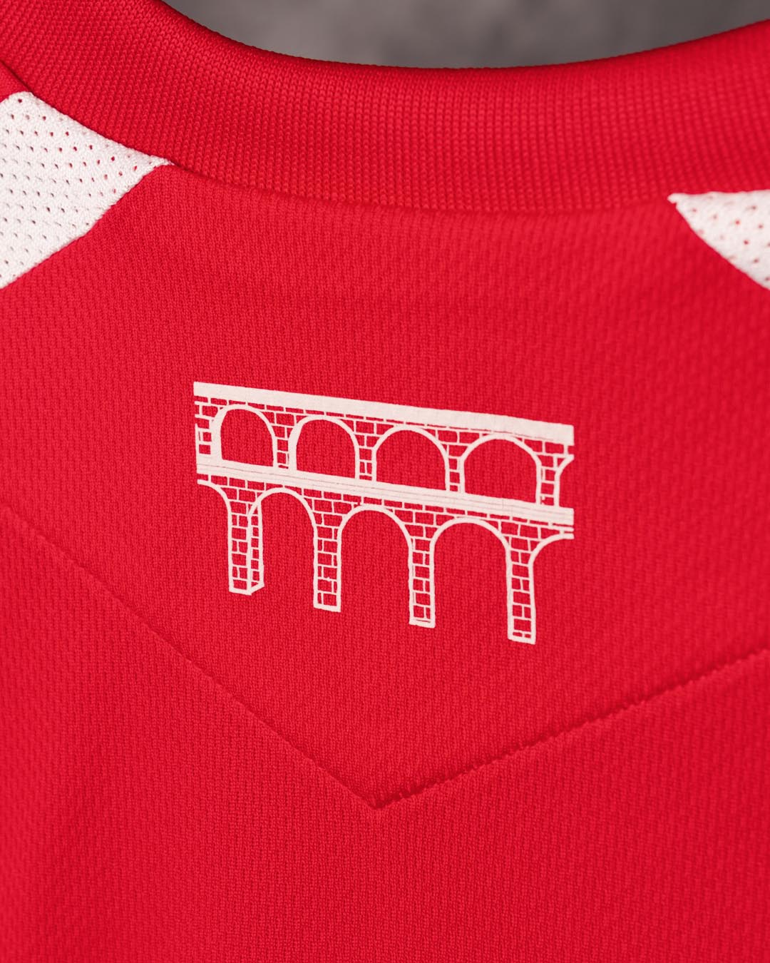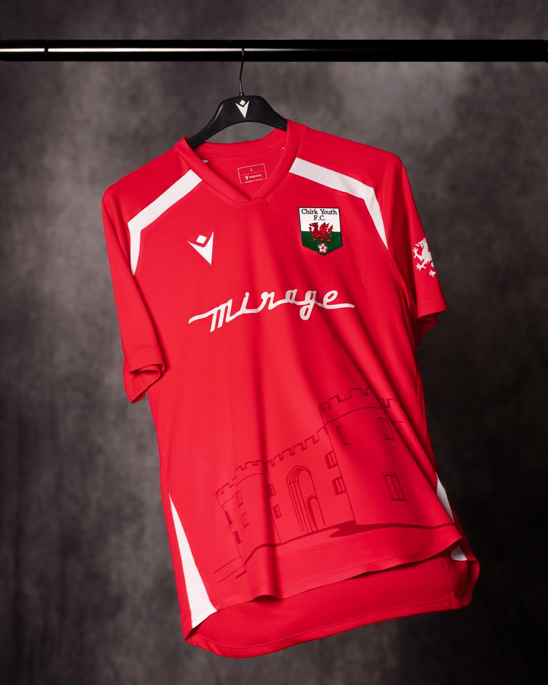 Sulle maglie rosse del Chirk Youth FC, realizzate da Macron e nello specifico dal Macron Sports Hub Wrexham, il disegno dell’acquedotto di Chirk spicca nel retrocollo esterno, mentre anteriormente è presente un altro gioiello storico della cittadina gallese, il profilo del castello di Chirk, fortezza tra le meglio conservate in Galles e fatta costruire da Edoardo I tra il 1295 e il 1310.